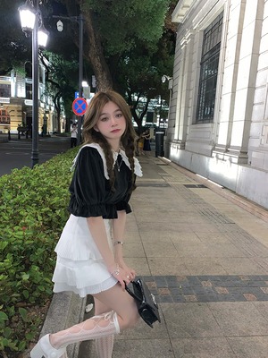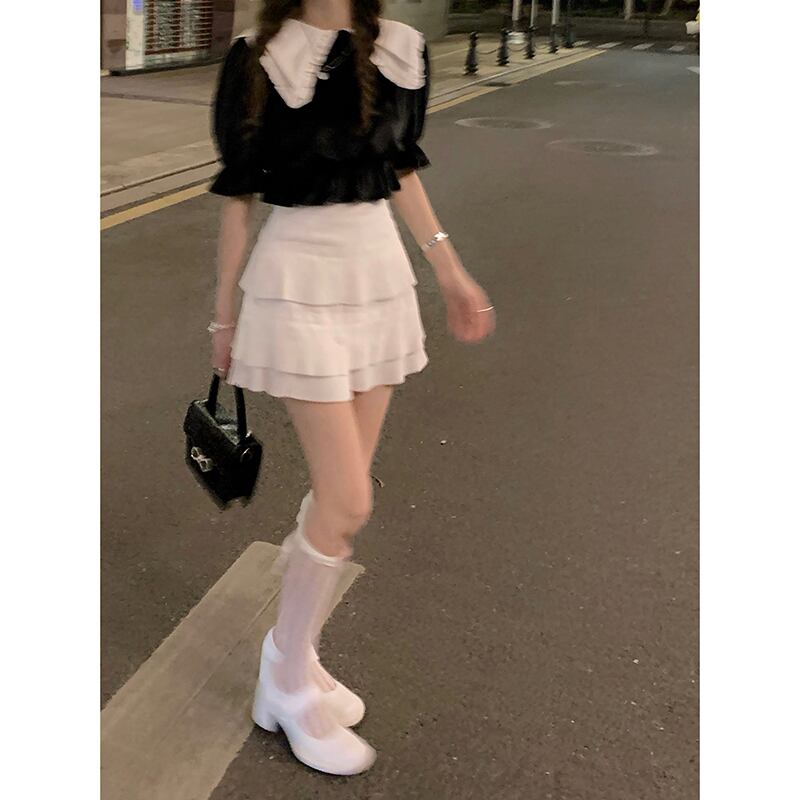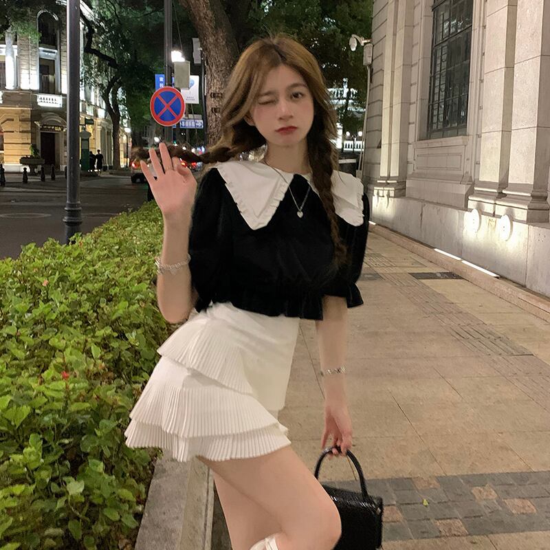 ドレス サマーベルベットFlowerデザイン カラーTシャツ トップス プリーツスカート 夏物 フラワーデザイン Xiaofeijia6936783517