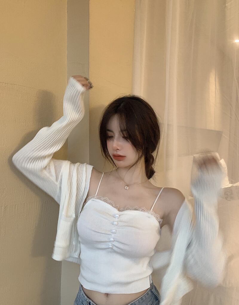 ニットサマーレースショートノースリーブトップス 夏物 Xiaofeijia97603023008