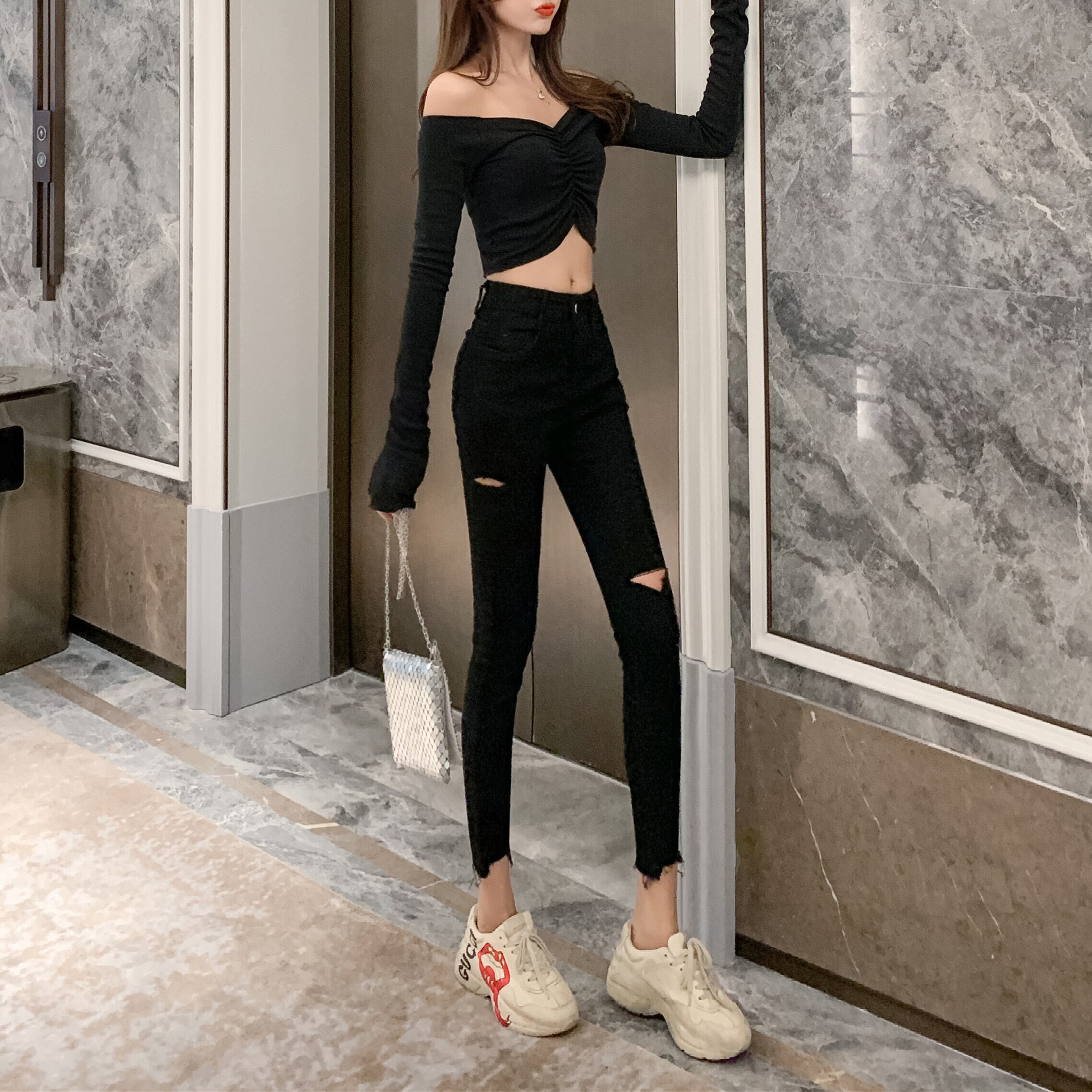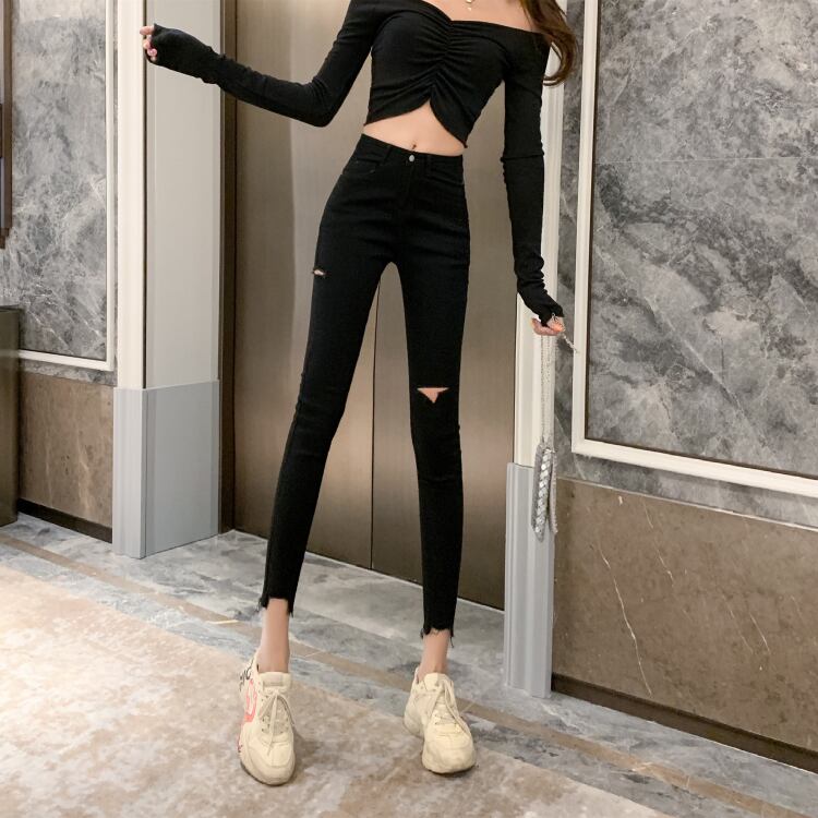 ジーンズ ストレッチハイウェストパンツ スプリングサマースリム エラスティック 伸縮 春物 夏物 Xiaofeijia28913244268