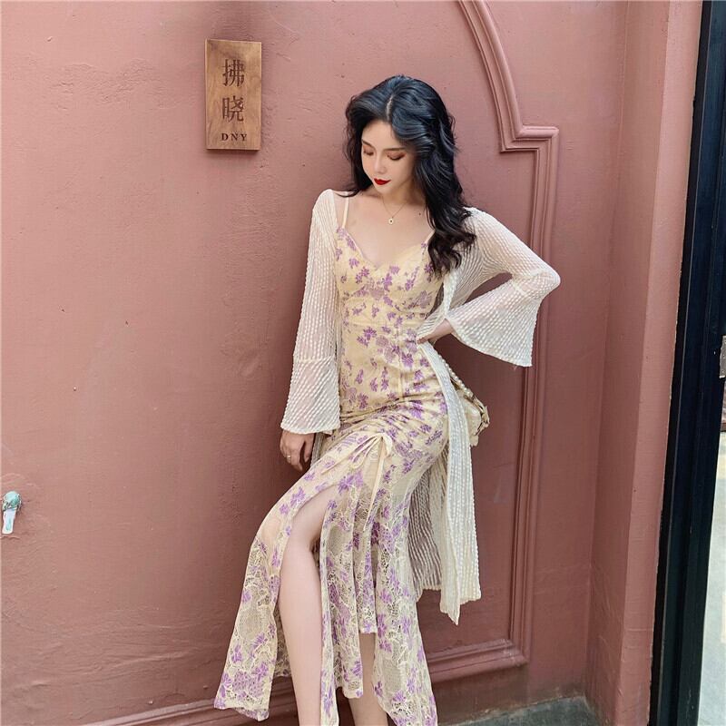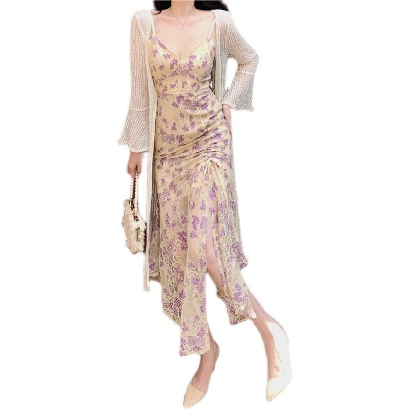 色:パープルレースサスペンダードレス,レースロングカーディガン