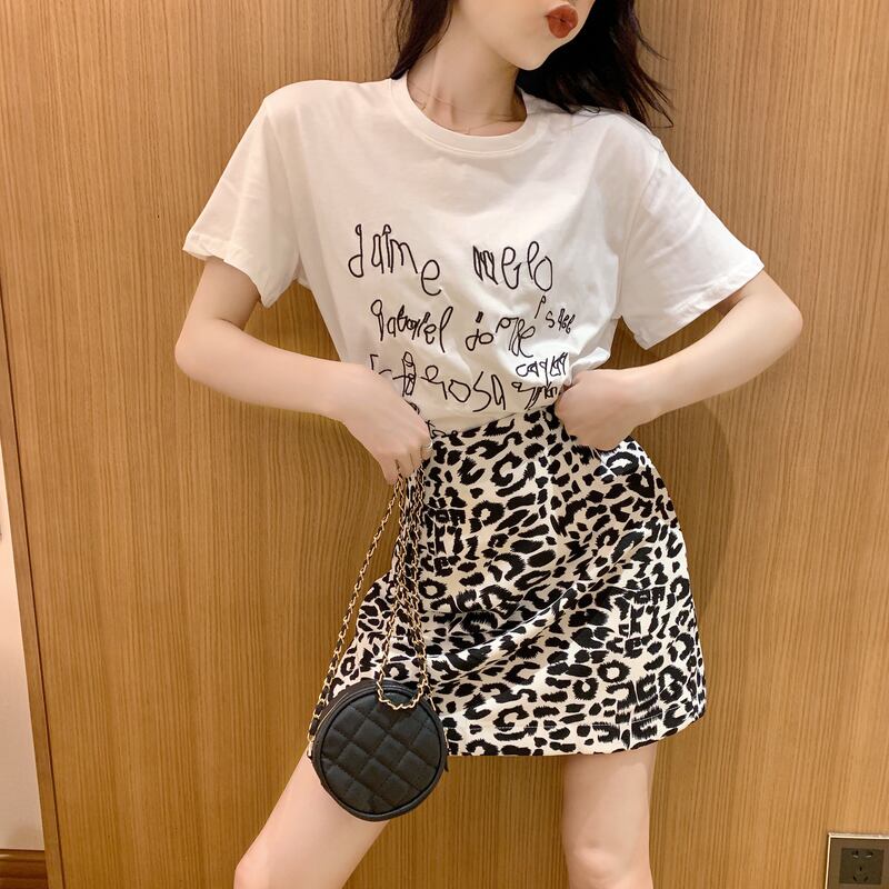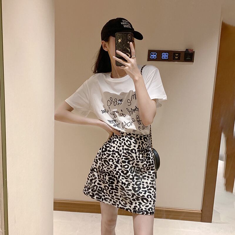 サマーTシャツ ハイウェストウェストレオパードプリント柄Aラインスカート 夏物 Xiaofeijia16947039798