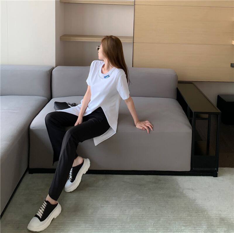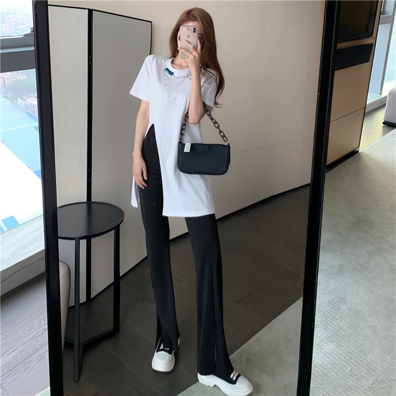 レディーススプリングサマールーズTシャツ ハイウェストパンツ レッド 春物 夏物 Xiaofeijia24789767002