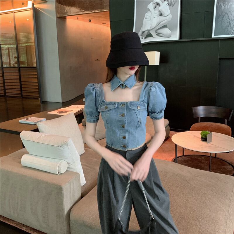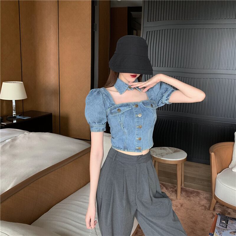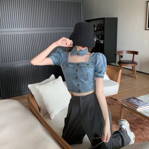 スリーブ半袖スリムシャツ トップス サマー ショート ハーフスリーブ 夏物 スクウェア Xiaofeijia50615915171