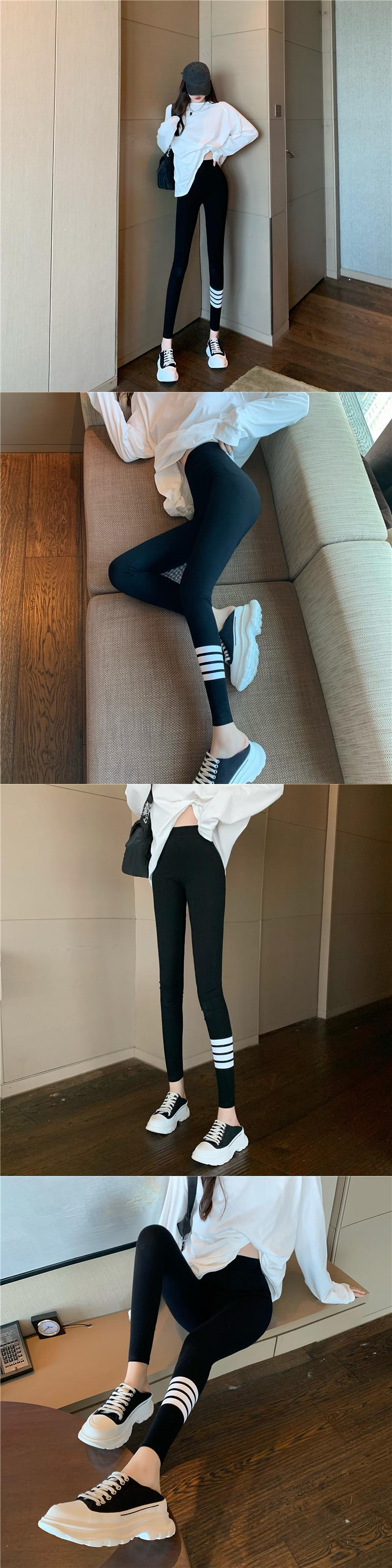 ストライプパンツ プリントレギンス スプリングハイウェストウェストスリム 春物 Xiaofeijia42178396145