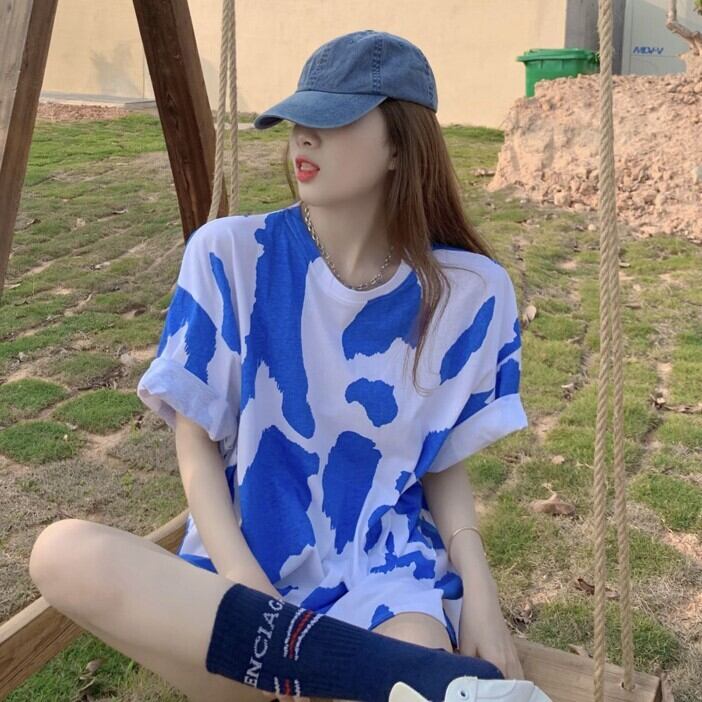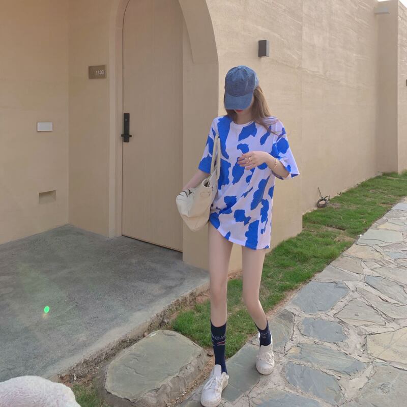 プリント柄Tシャツ シャツ サマールーズラウンドネックトップス 夏物 Oネック Xiaofeijia93830300552