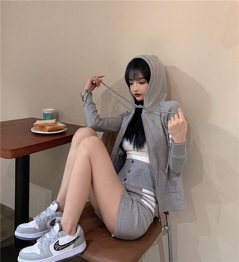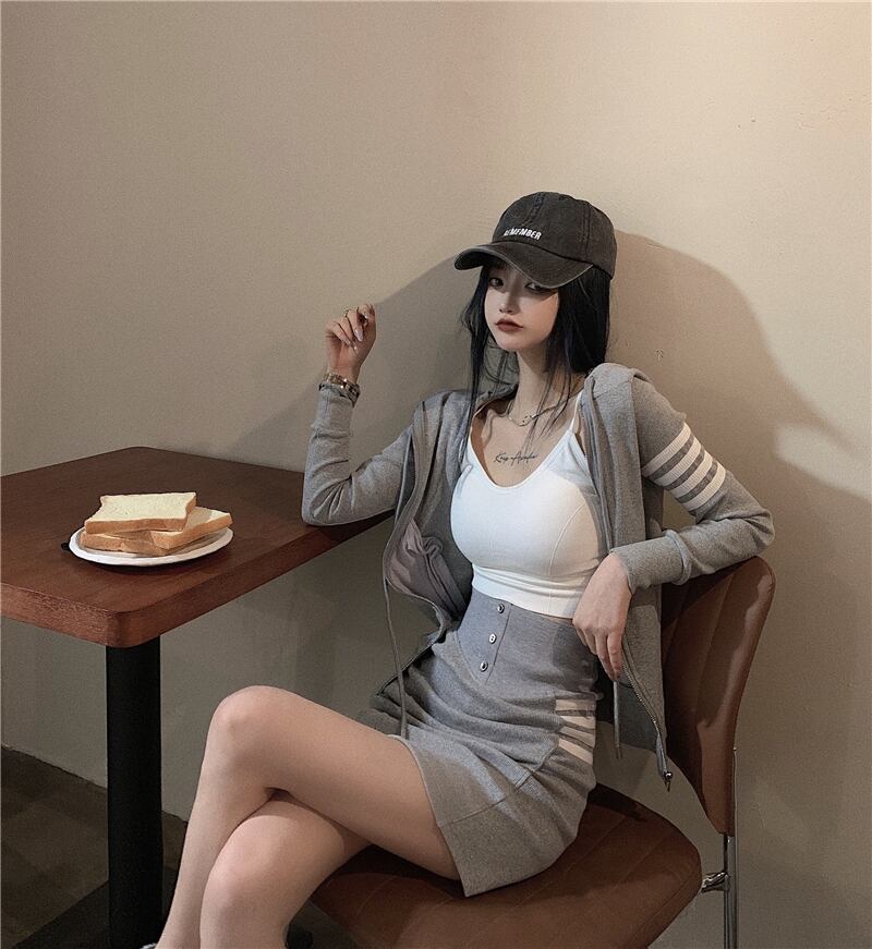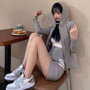 スプリングフードカーディガンセーター ハイウェストウェストスカート カジュアルレディース 春物 Xiaofeijia22586151210