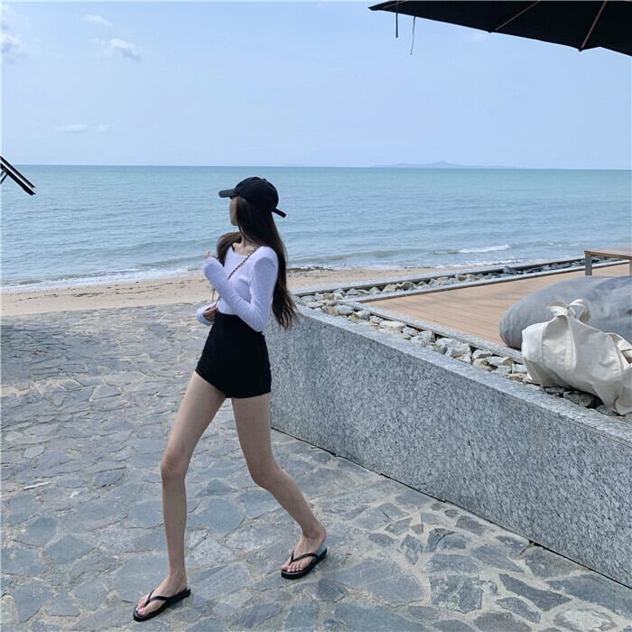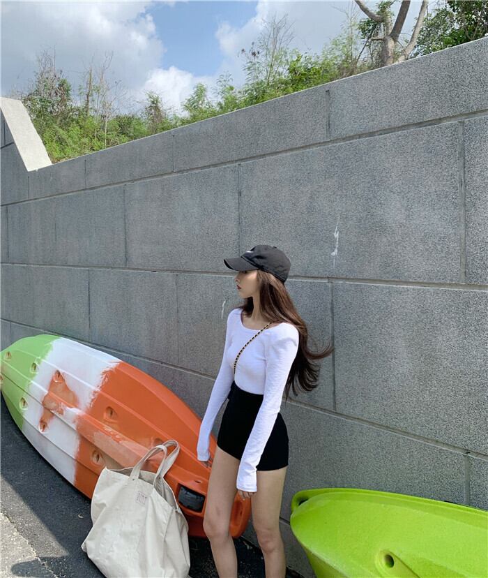 スプリングサマーソリッド カラーTシャツ ハイウェストウェストショーツ カジュアル ロング 春物 夏物 ブルマー ソリッドカラー Xiaofeijia79433889558