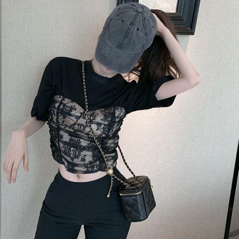 Tシャツ レースドレス サマースタイルスリムウェストスカート 夏物 ステッチ Xiaofeijia82513382485