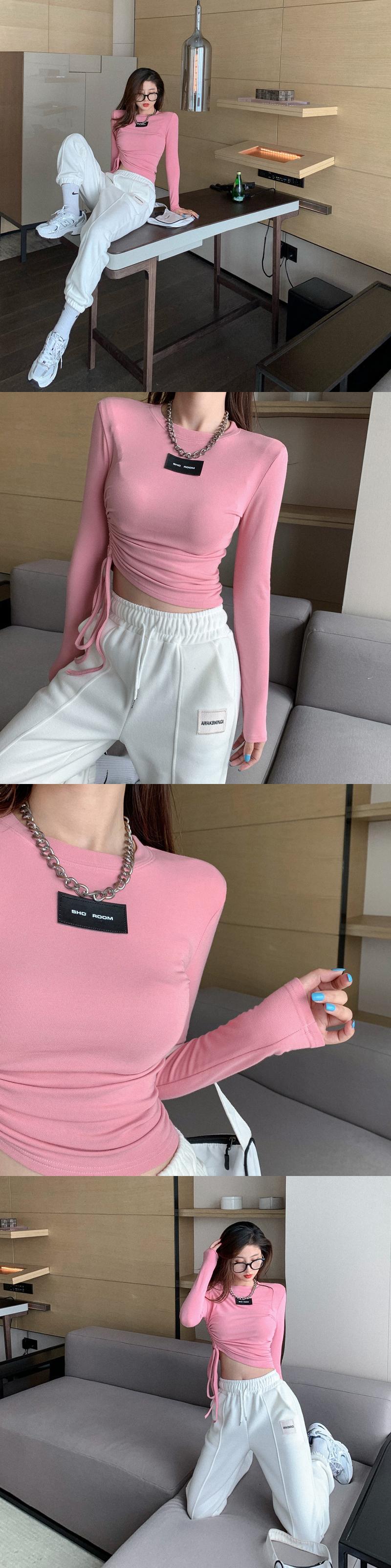 スプリングスリムギャザー長袖スリーブシャツ レディース ロング 春物 Xiaofeijia75193087865