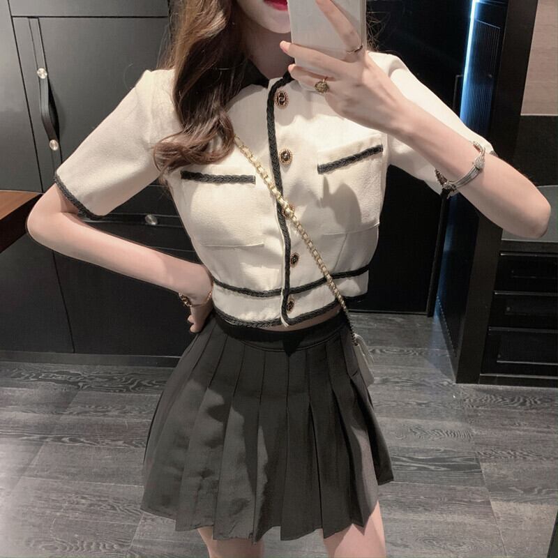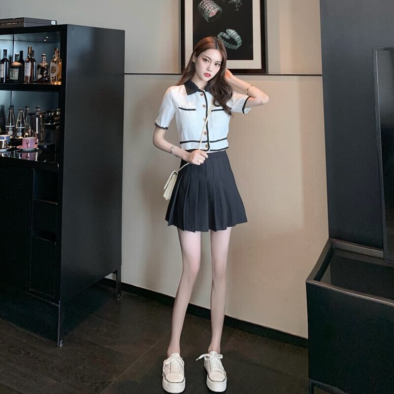 スタイルサマーショートカラートップス ハイウェストプリーツスカート 夏物 Xiaofeijia87914526694