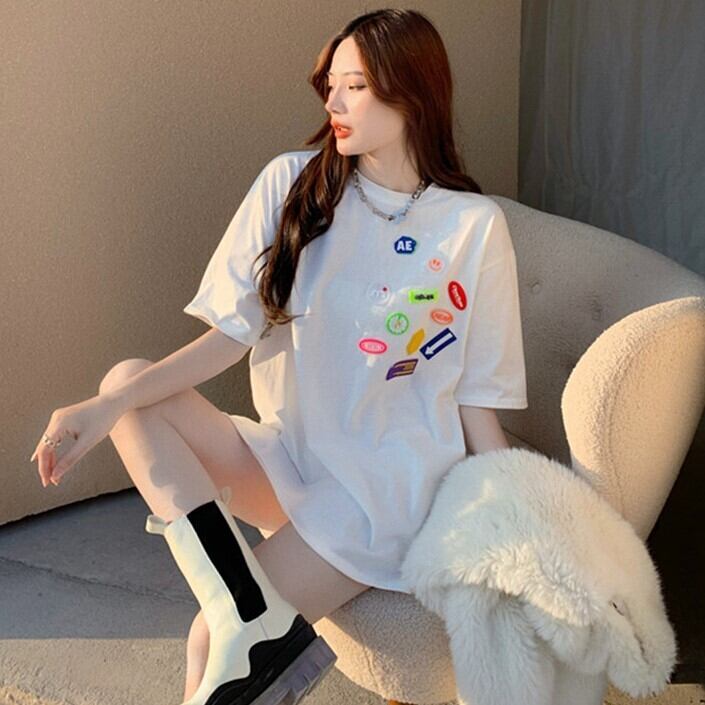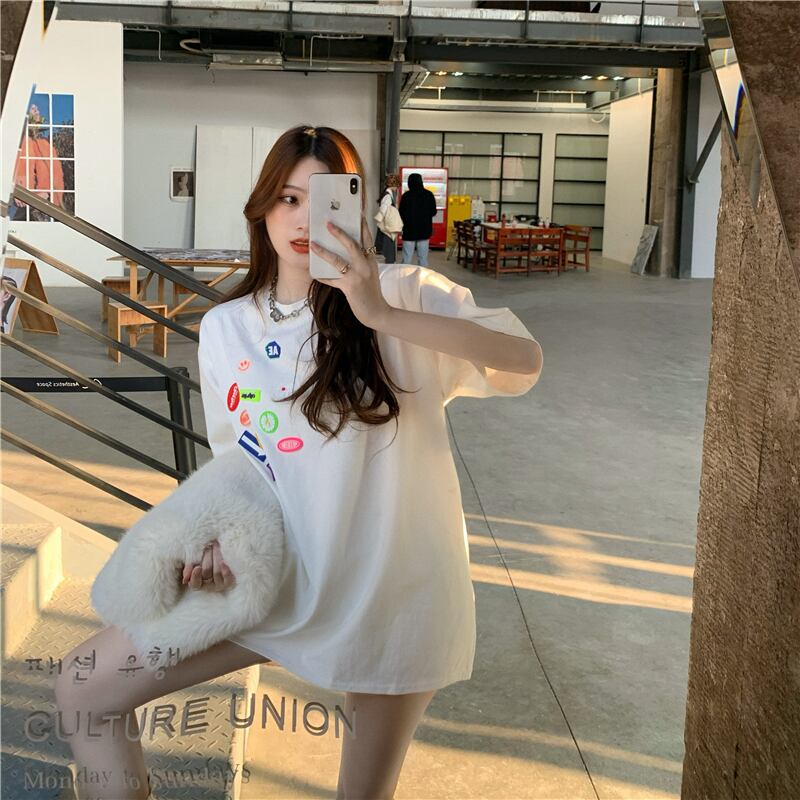 Tシャツ シャツ ホワイトスプリングサマーラウンドネックルーズトップス 春物 夏物 Oネック Xiaofeijia16359855166