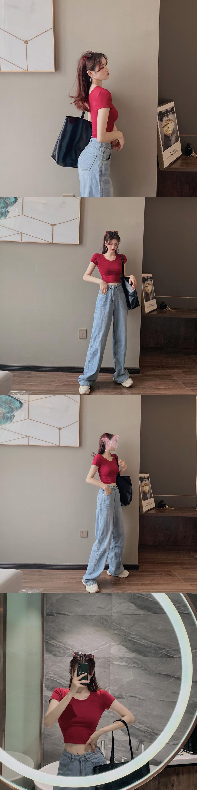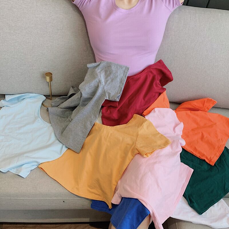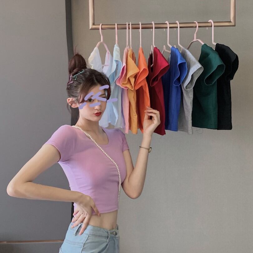 ショートクロップドTシャツ スリムサマーソリッド カラートップス 夏物 ソリッドカラー Xiaofeijia76909198541