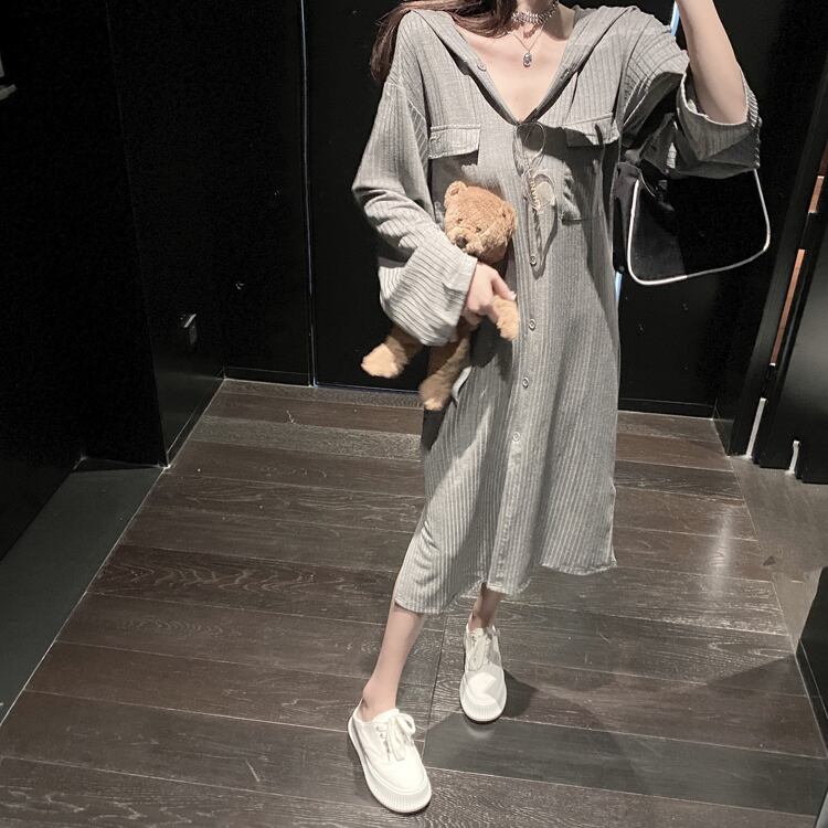 ルーズフードセーター ドレス スプリング長袖スリーブスカート ロング 春物 Xiaofeijia40466045489