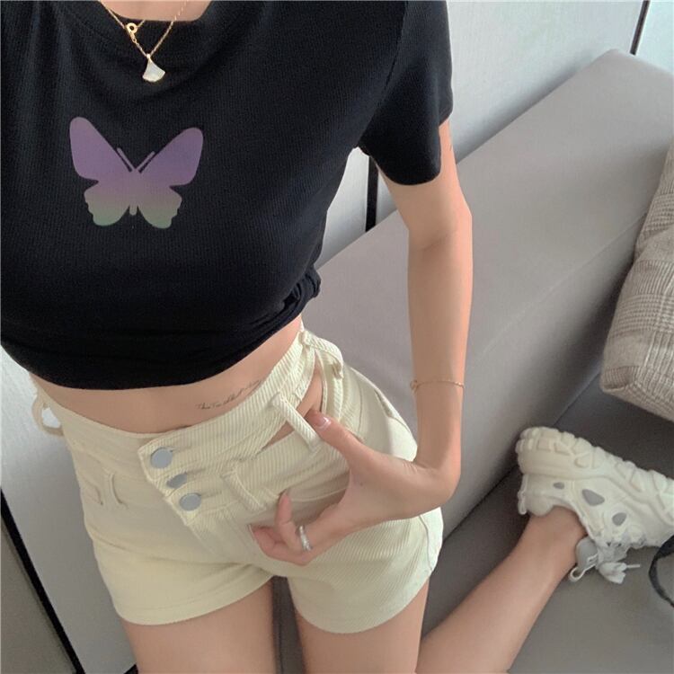 ジーンズ レディースサマーパンツ ウェストショーツ ルーズ薄手Aラインワイドレッグ 夏物 ブルマー ワイドパンツ Xiaofeijia24472429355