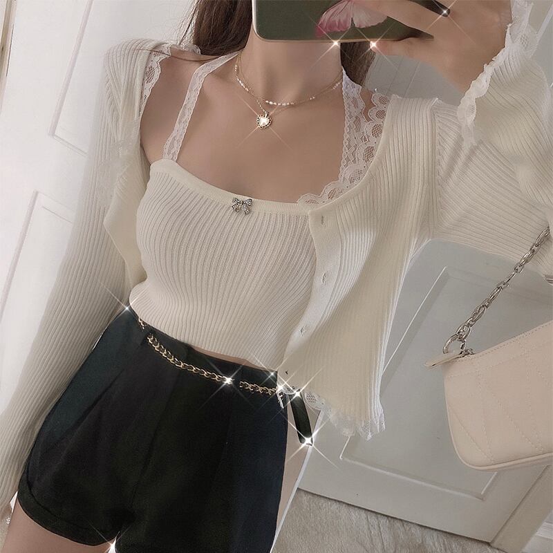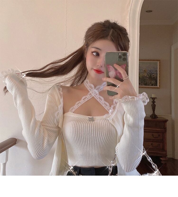 サマーニットカーディガンレース ロング 夏物 Xiaofeijia20192588335
