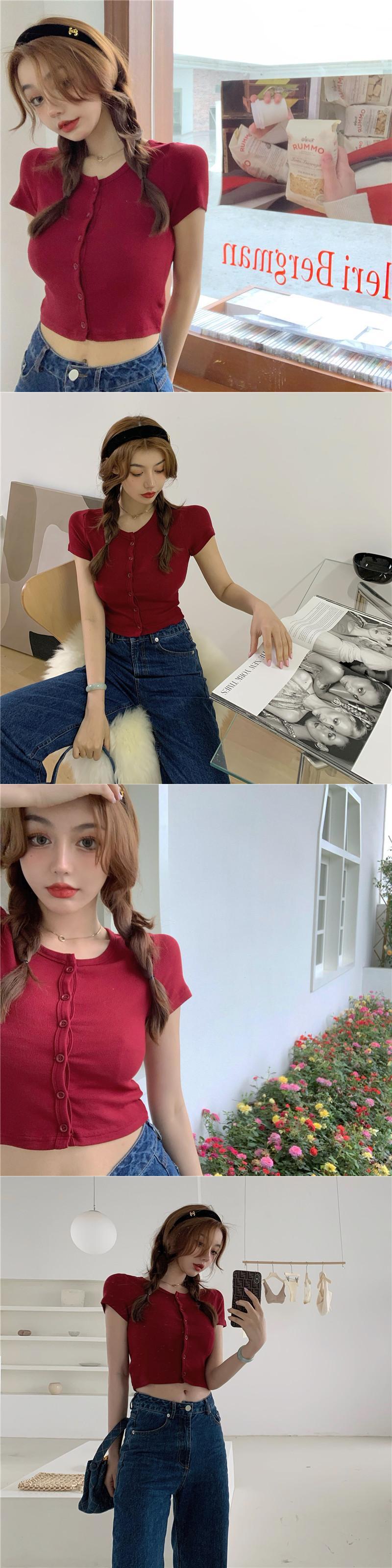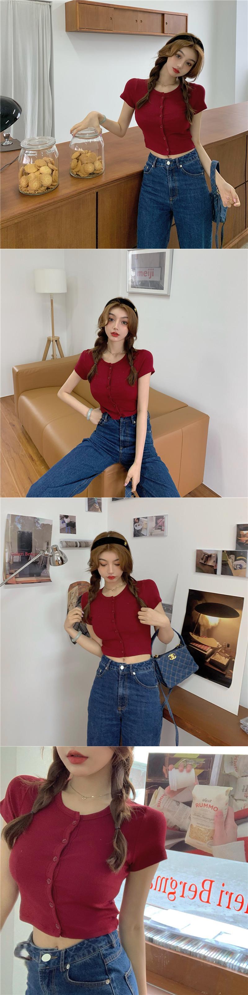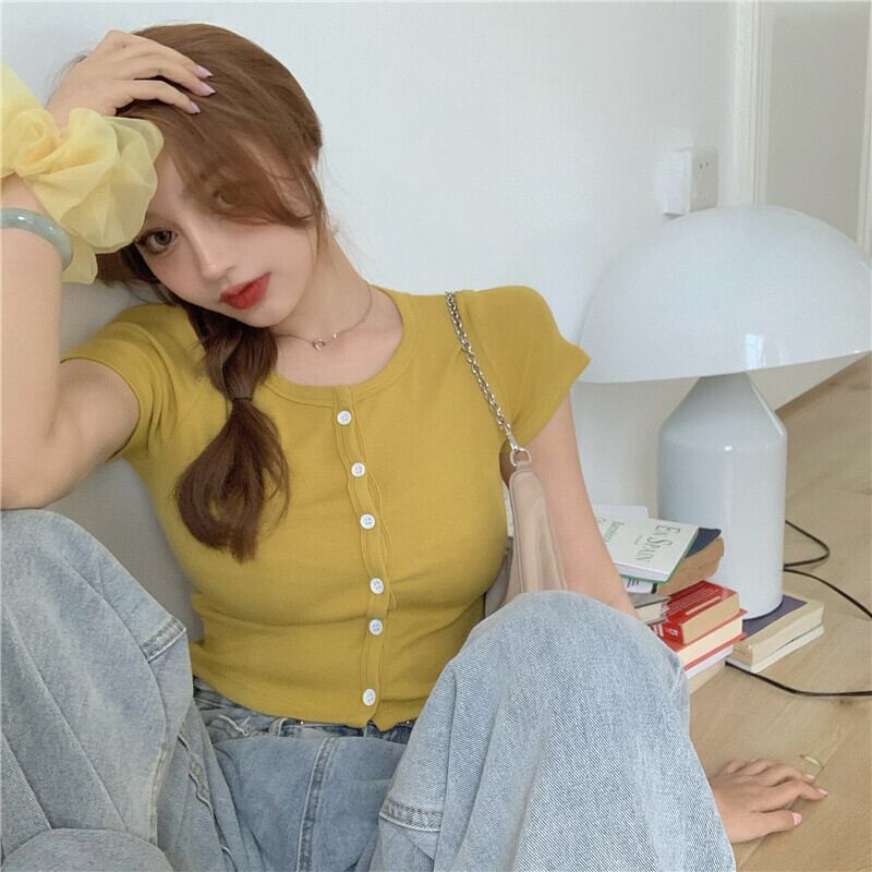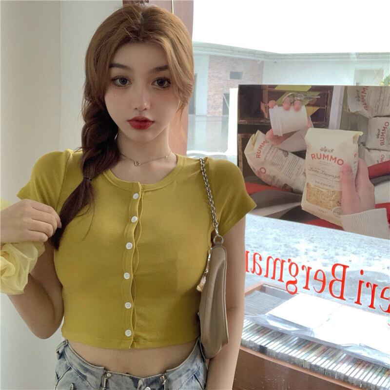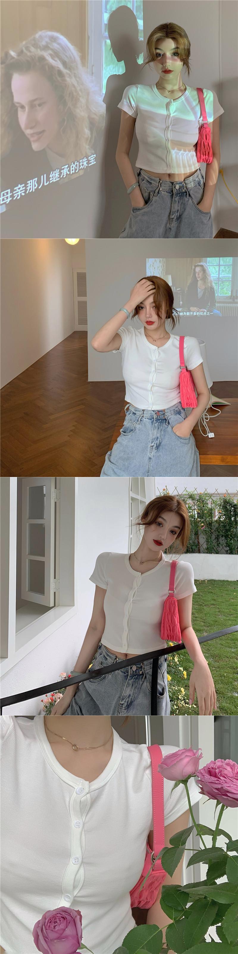 ニットショートTシャツ サマートップス 夏物 Xiaofeijia46681979247