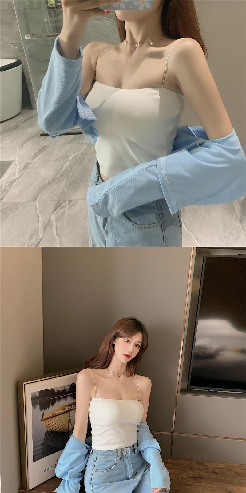 サマー薄手ストラップ スリムトップス ソリッド カラーショートバックシャツ 夏物 ソリッドカラー Xiaofeijia3408782035
