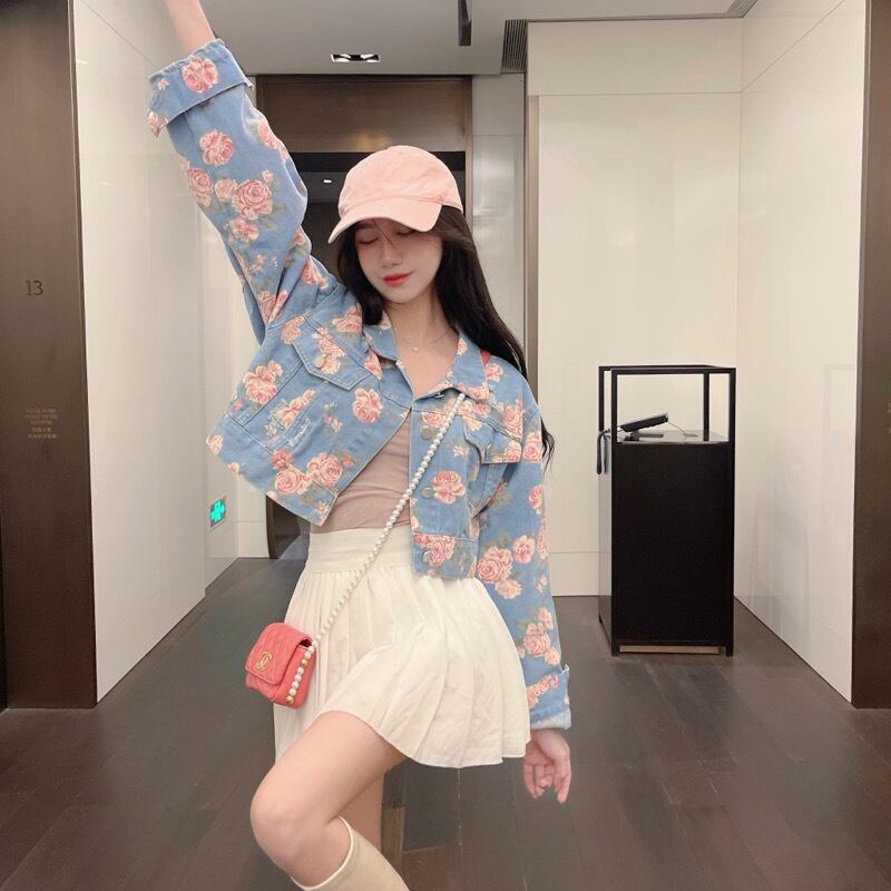 スタンダードプリント柄薄手ショートジャケット レトロ 大人ガーリー スウィート キュート カジュアル オータム 秋物 ピュア Xiaofeijia26219846802