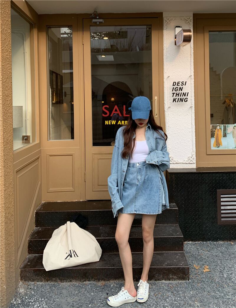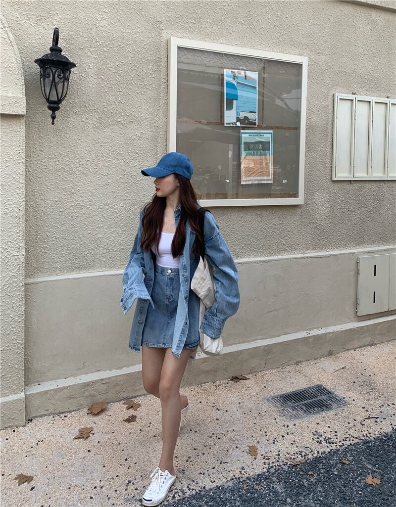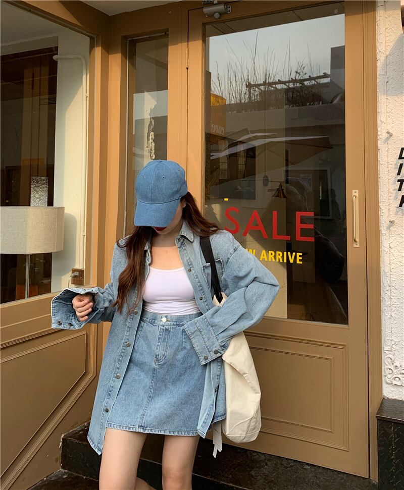 スタイルスタンダードルーズコート ハイウェストウェストAラインスカート オータム レトロ 秋物 Xiaofeijia29919692597