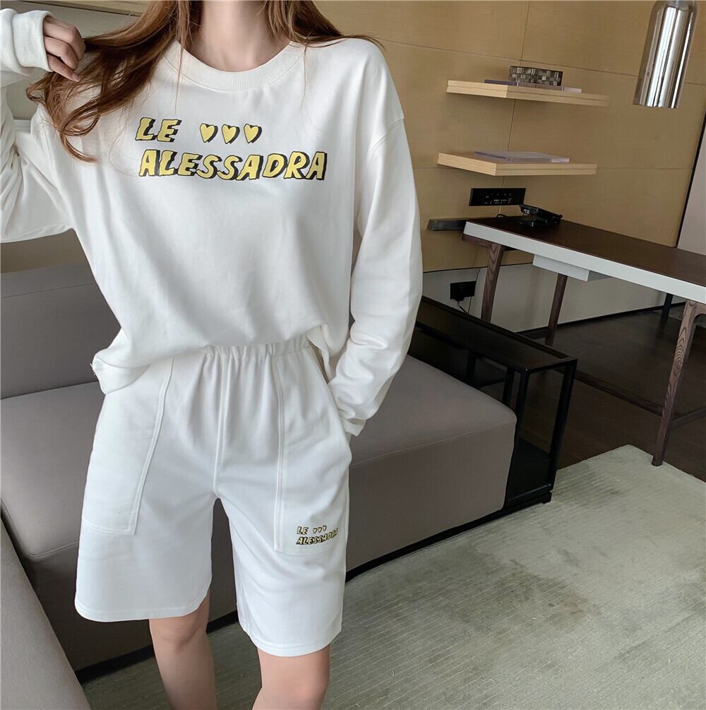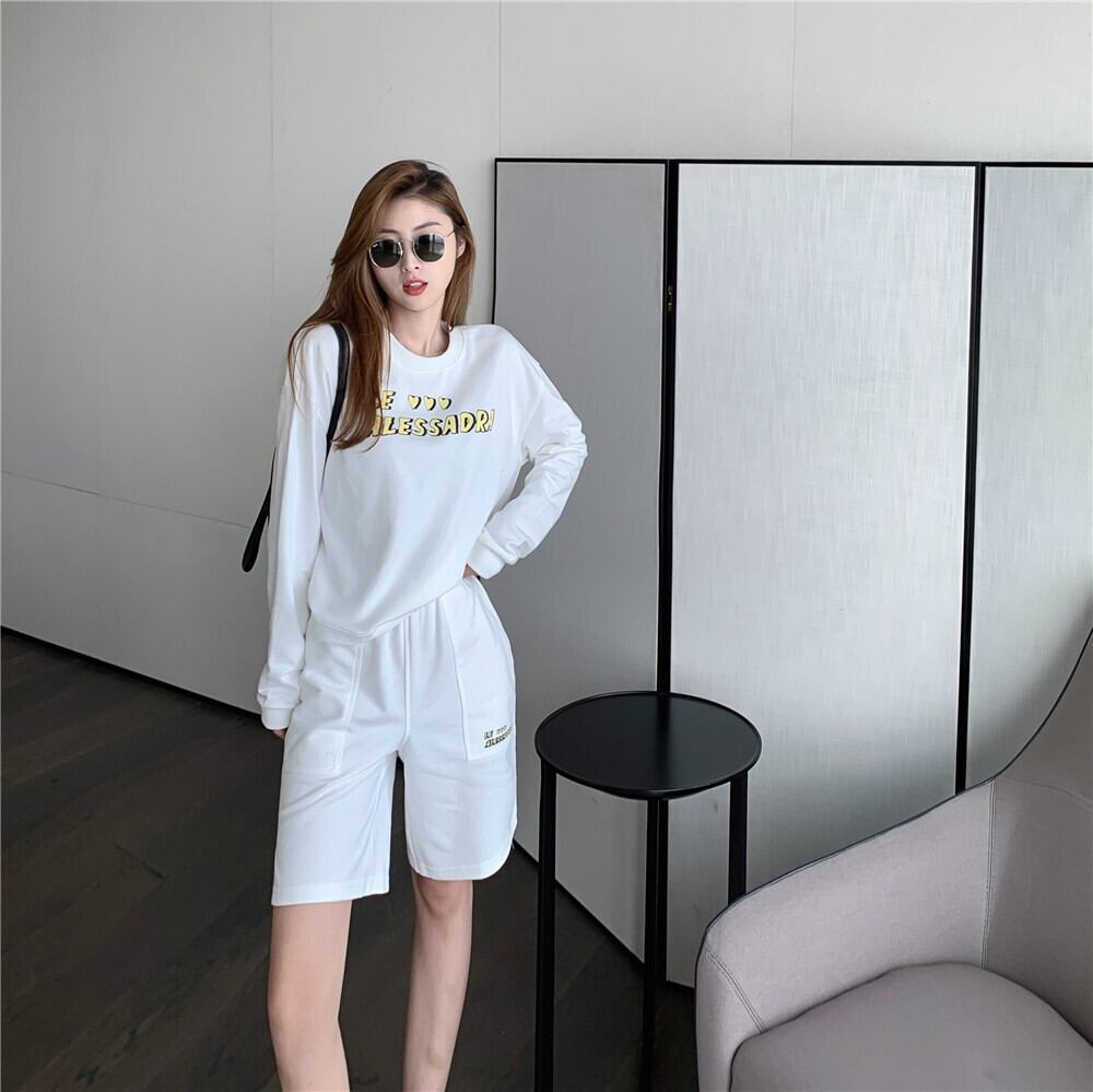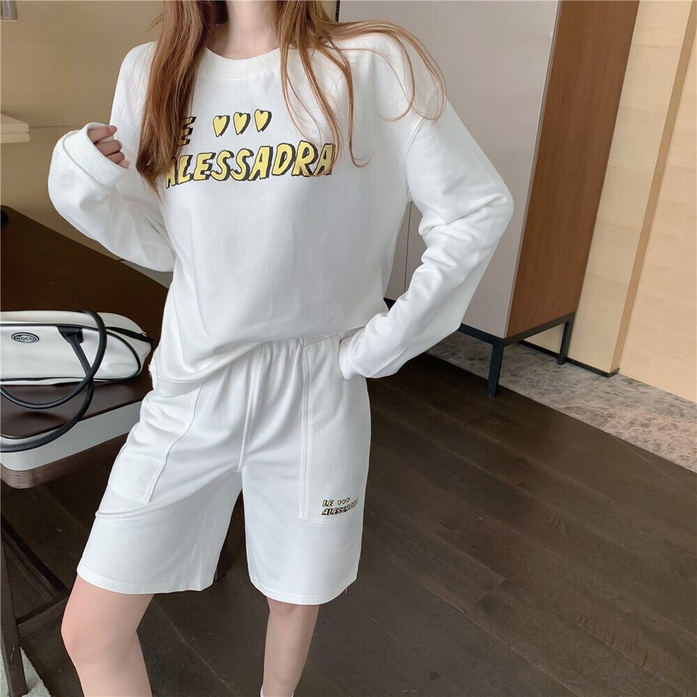 セーター オータムルーズプリントトップス カジュアルハイウェストショーツ ロング 秋物 ブルマー Xiaofeijia56723889612