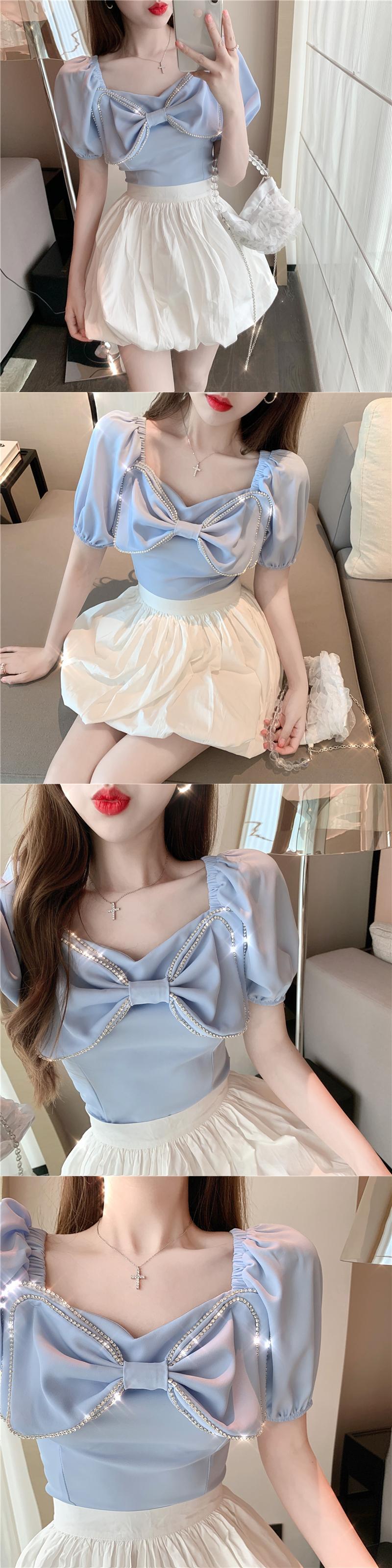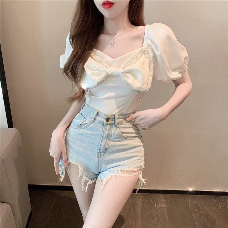 リボンシャツ サマースタイルトップス ショートスリーブ 夏物 Xiaofeijia73980319124