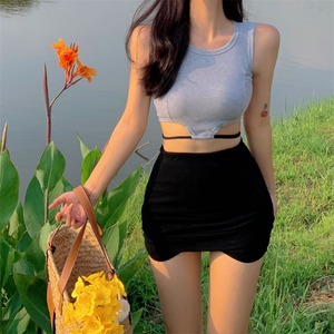 スカート プリーツハイウェストウェストサマーブラックパンツ 夏物 Xiaofeijia95803772630