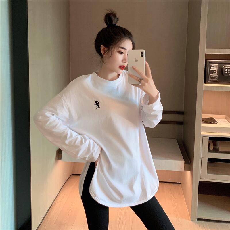 刺繍ルーズラウンドネックロングTシャツ シャツ Oネック Xiaofeijia52206405178