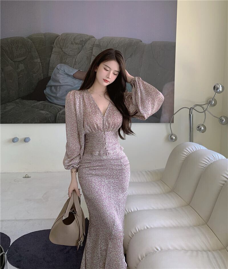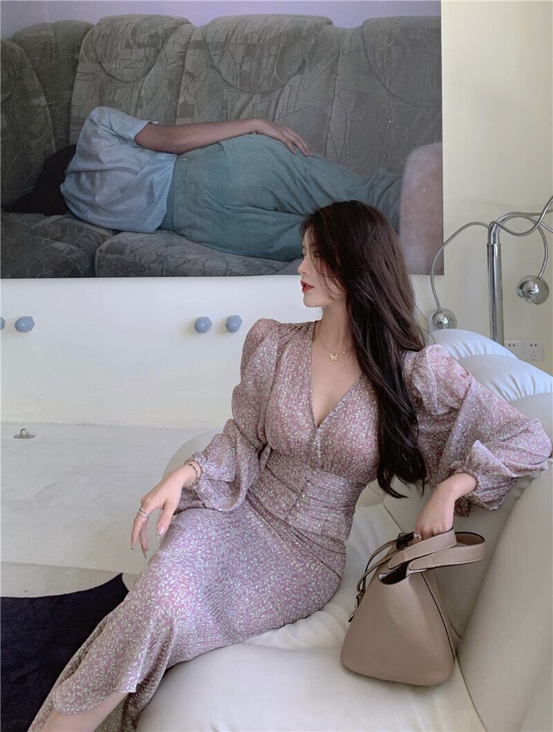 スタンダードフローラルスカート 薄手ウェストトップス ハイウェストオータムセット レトロ 秋物 花柄 Xiaofeijia58692346392