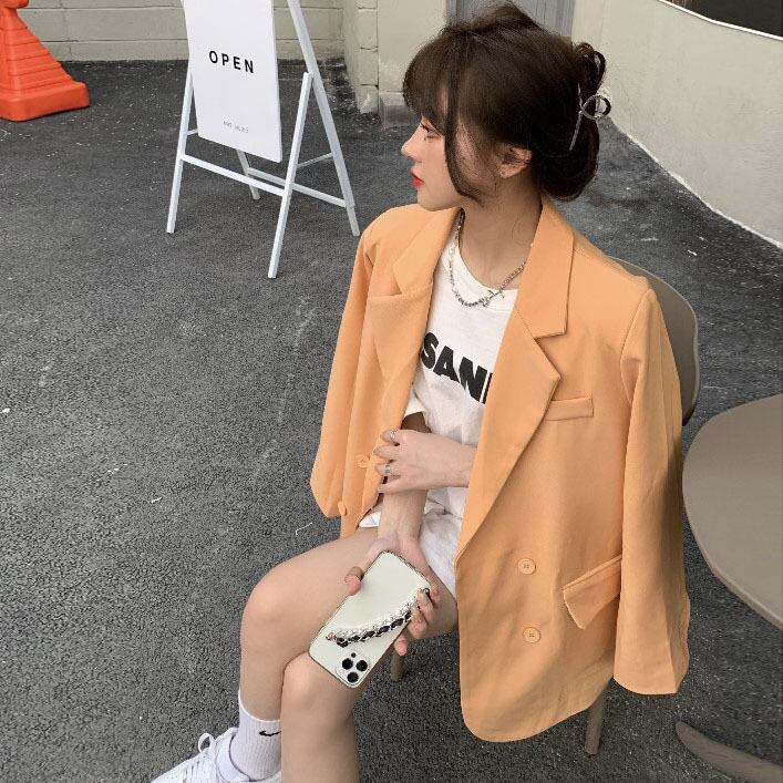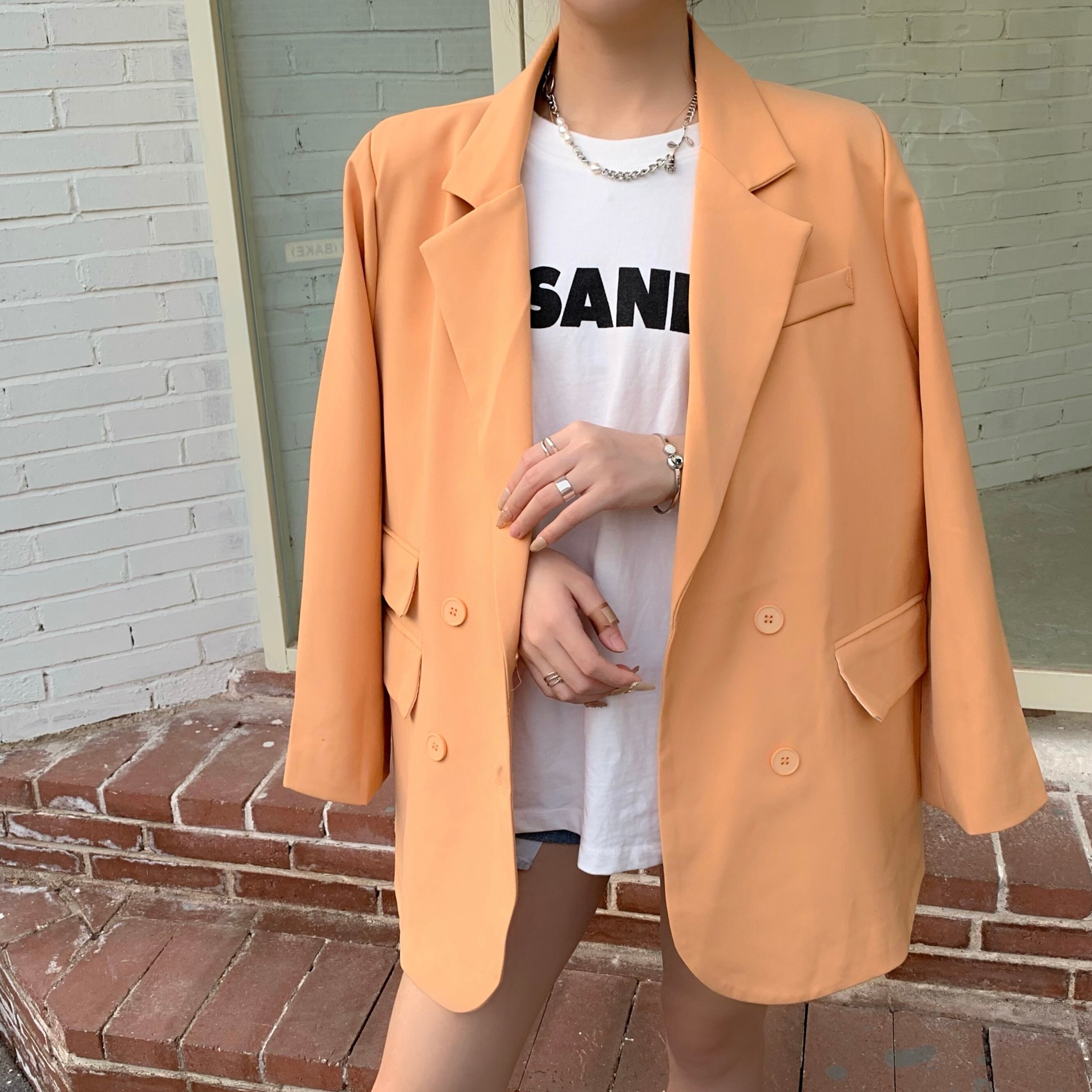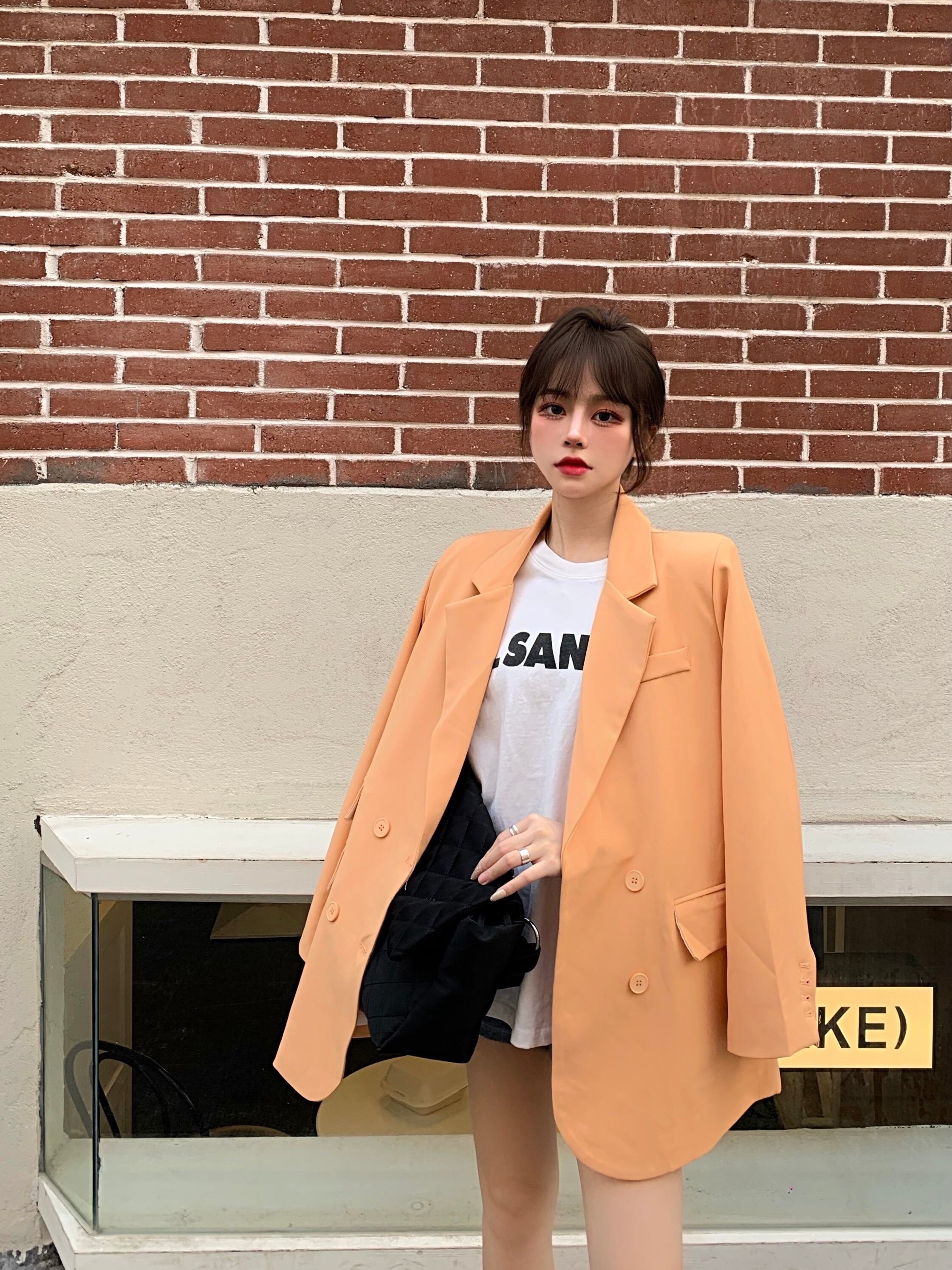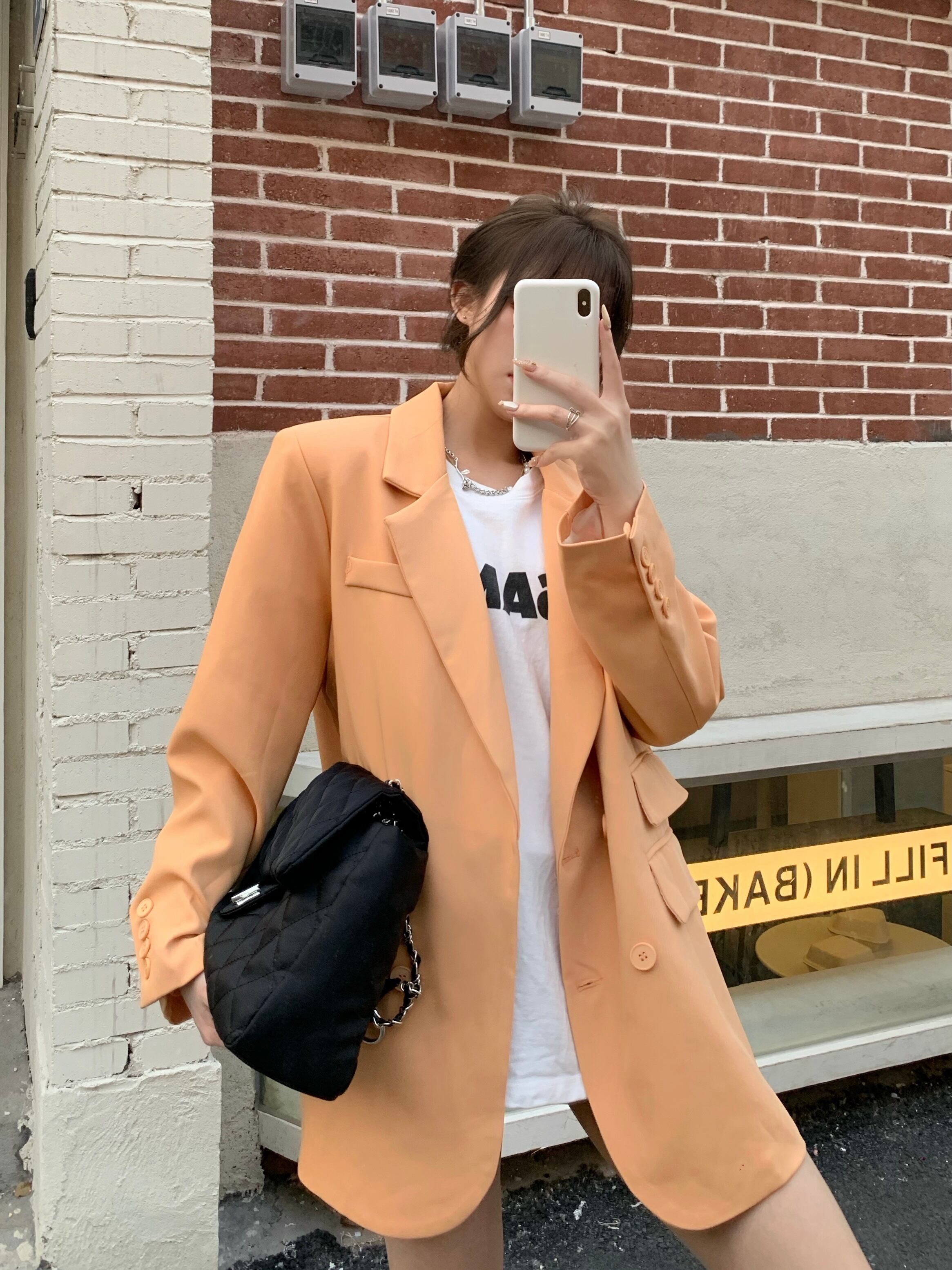 ジャケット スプリングカジュアルルーズオレンジトップス ロング 春物 Xiaofeijia39391932521