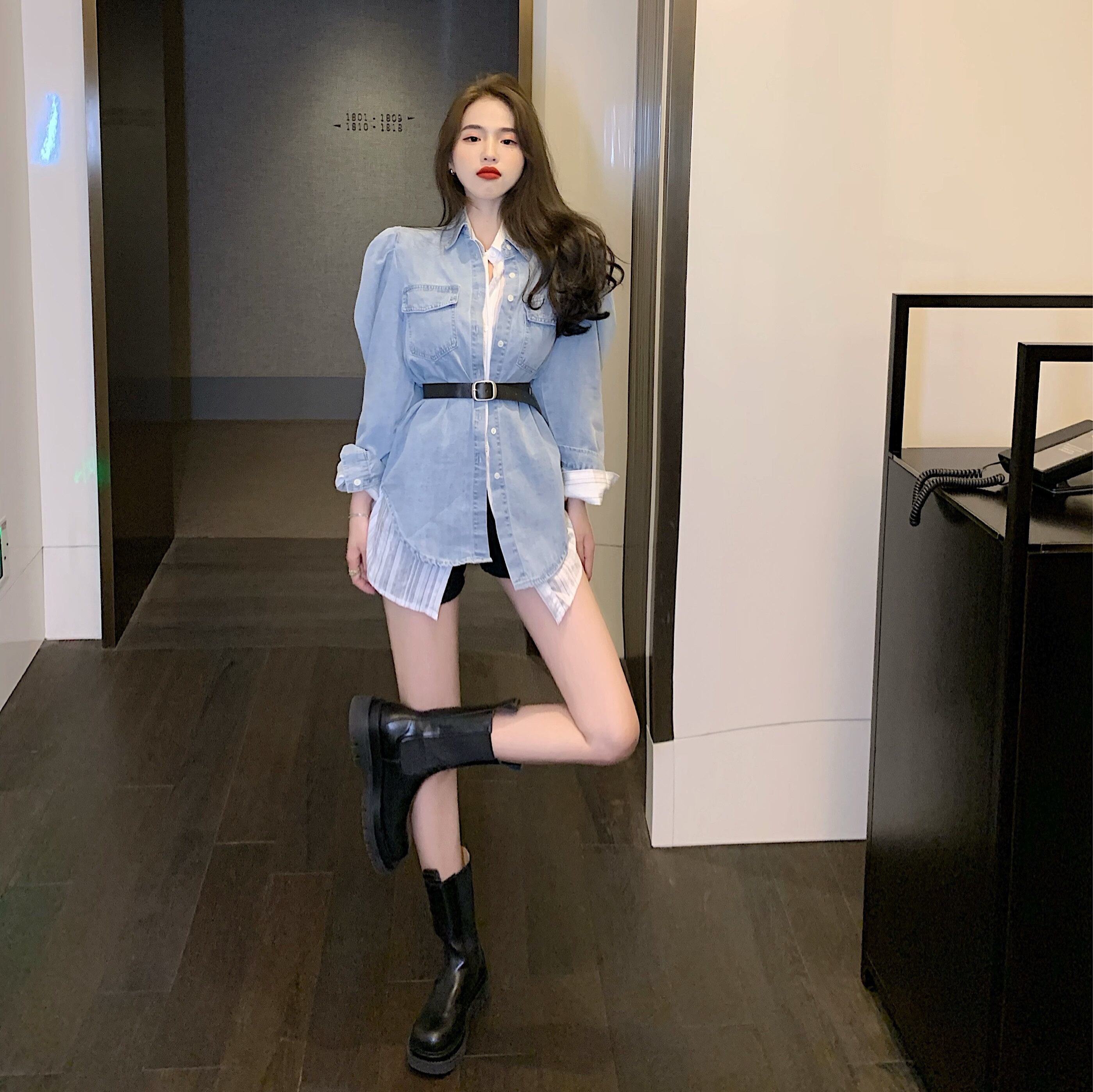 色:縦縞シャツ,デニムシャツ