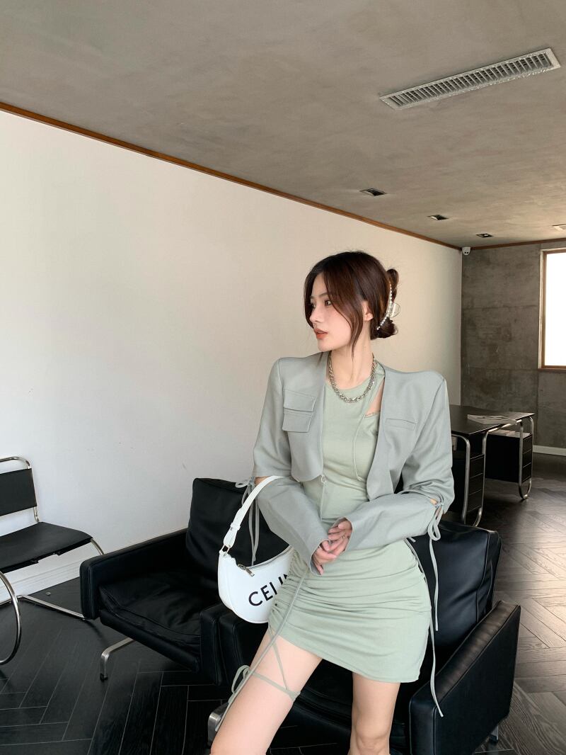 スリーブジャケット オータムグリーントップス ショート ロング 秋物 Xiaofeijia56754050367