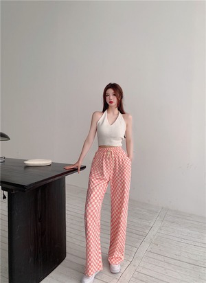 色:ピンクチェックパンツ,ブルーチェックパンツ,白いスリング,黄色のサスペンダー