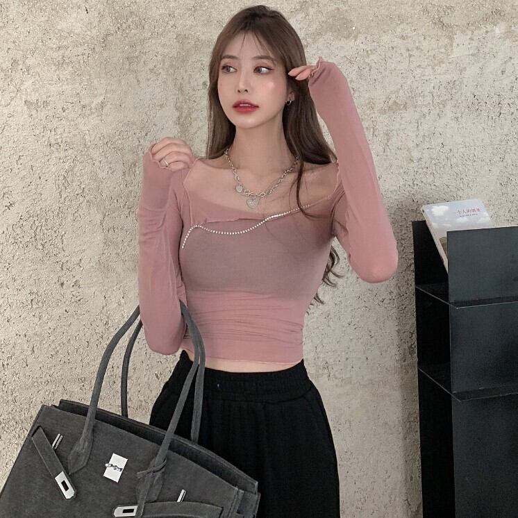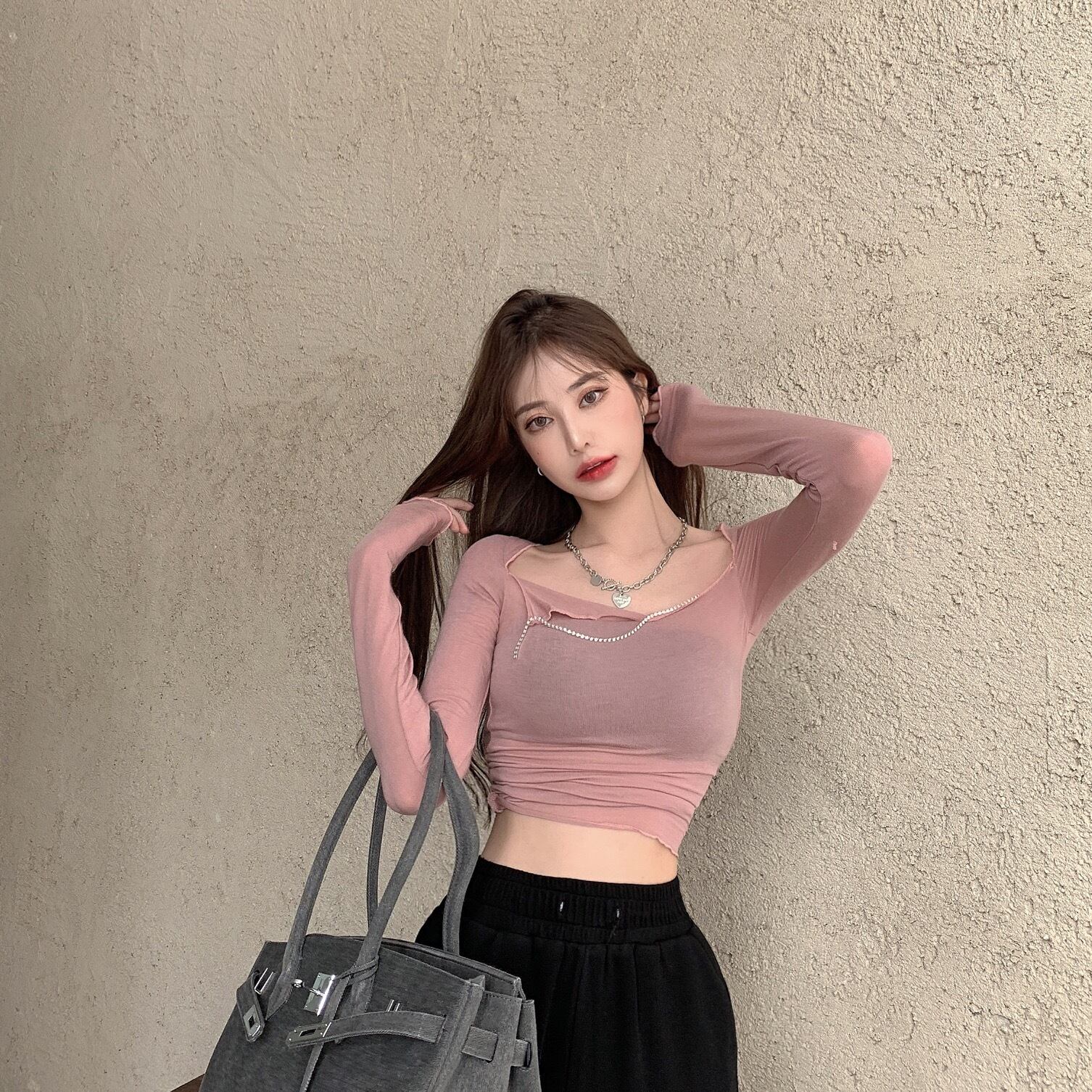 スプリングトップス スリムチェーン ストラップレスショートTシャツ シャツ ロング 春物 Xiaofeijia61545964000