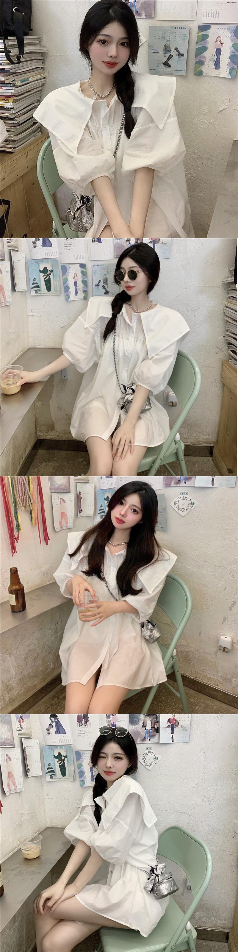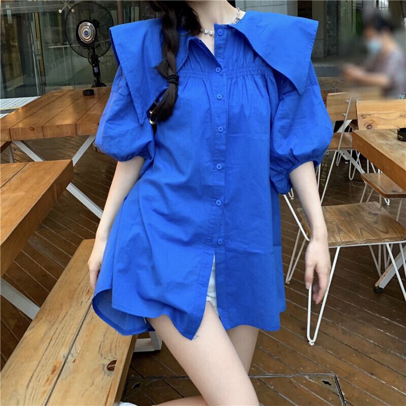 カラーシャツ サマープリーツルーズスリーブトップス スカート レディース ランタンスリーブ 夏物 Xiaofeijia51241469788