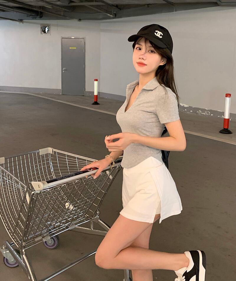 色:グレーのTシャツ,白いTシャツ,ネイビーブルーのTシャツ,白いスカート,グレースカート