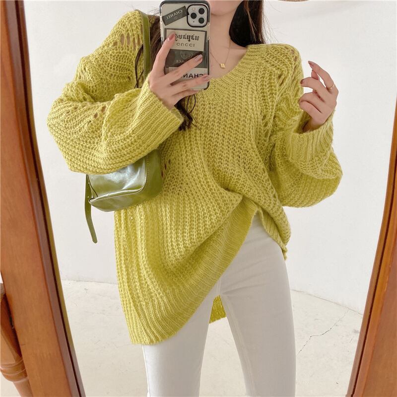 Vネックオータムブラウス ルーズセーター 秋物 Xiaofeijia75158347753