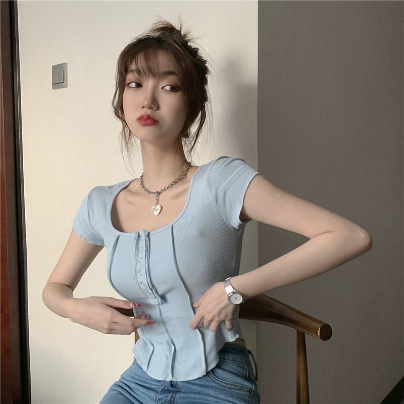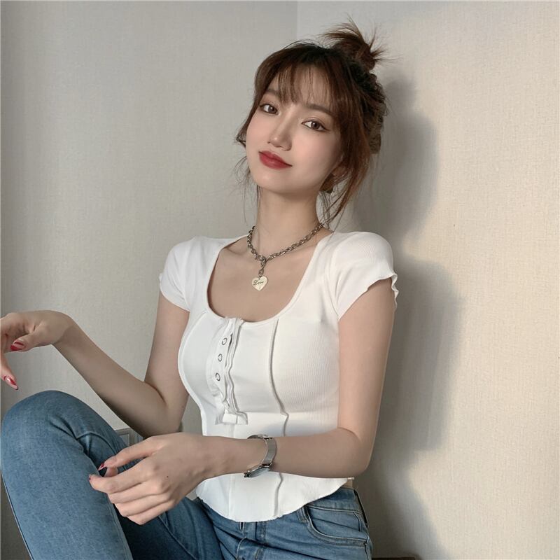 Tシャツ サマーショートウェストトップス 夏物 ピュア Xiaofeijia1840777985