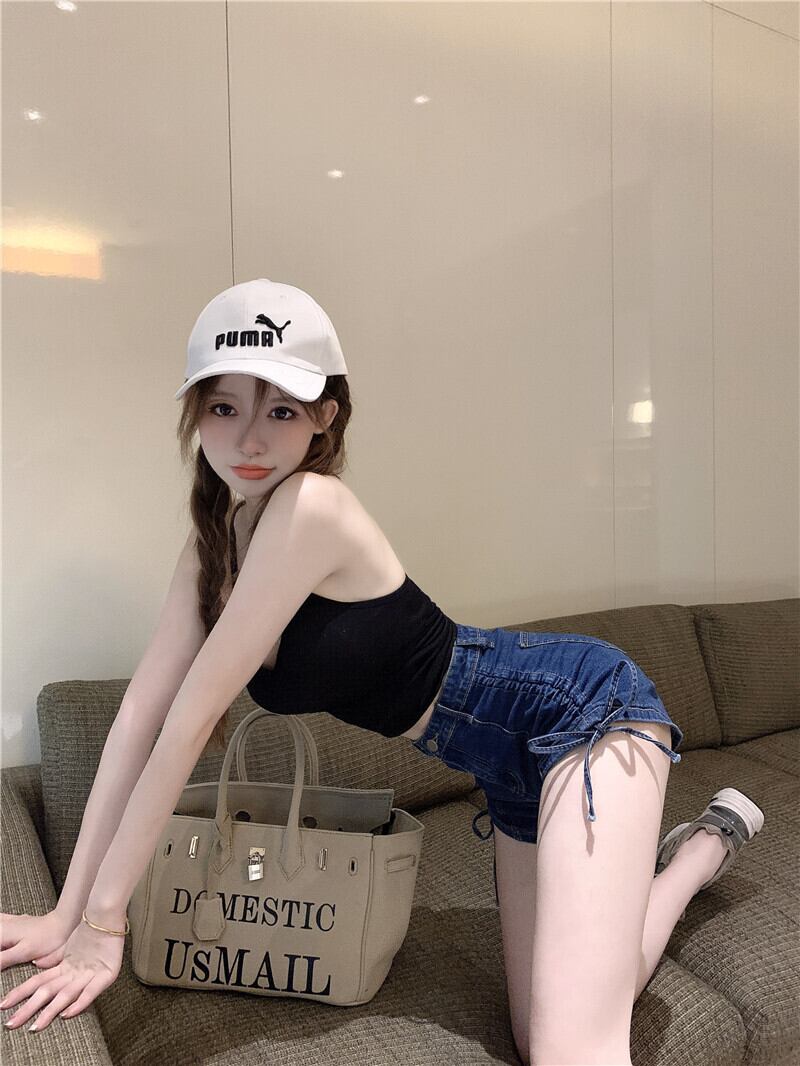 ウェストギャザーショーツ サマーロングジーンズ 薄手パンツ ストリート 夏物 ブルマー Xiaofeijia93333452795