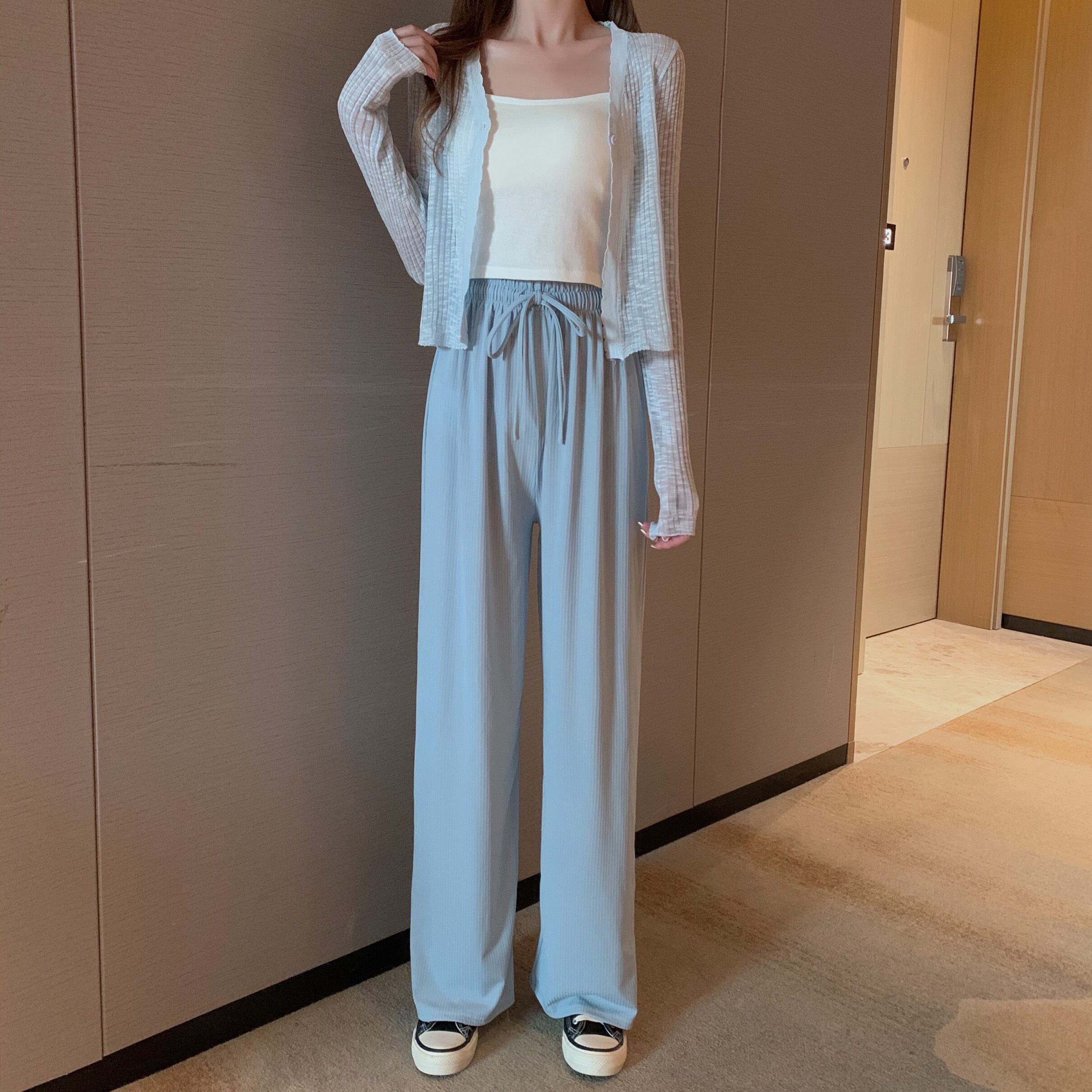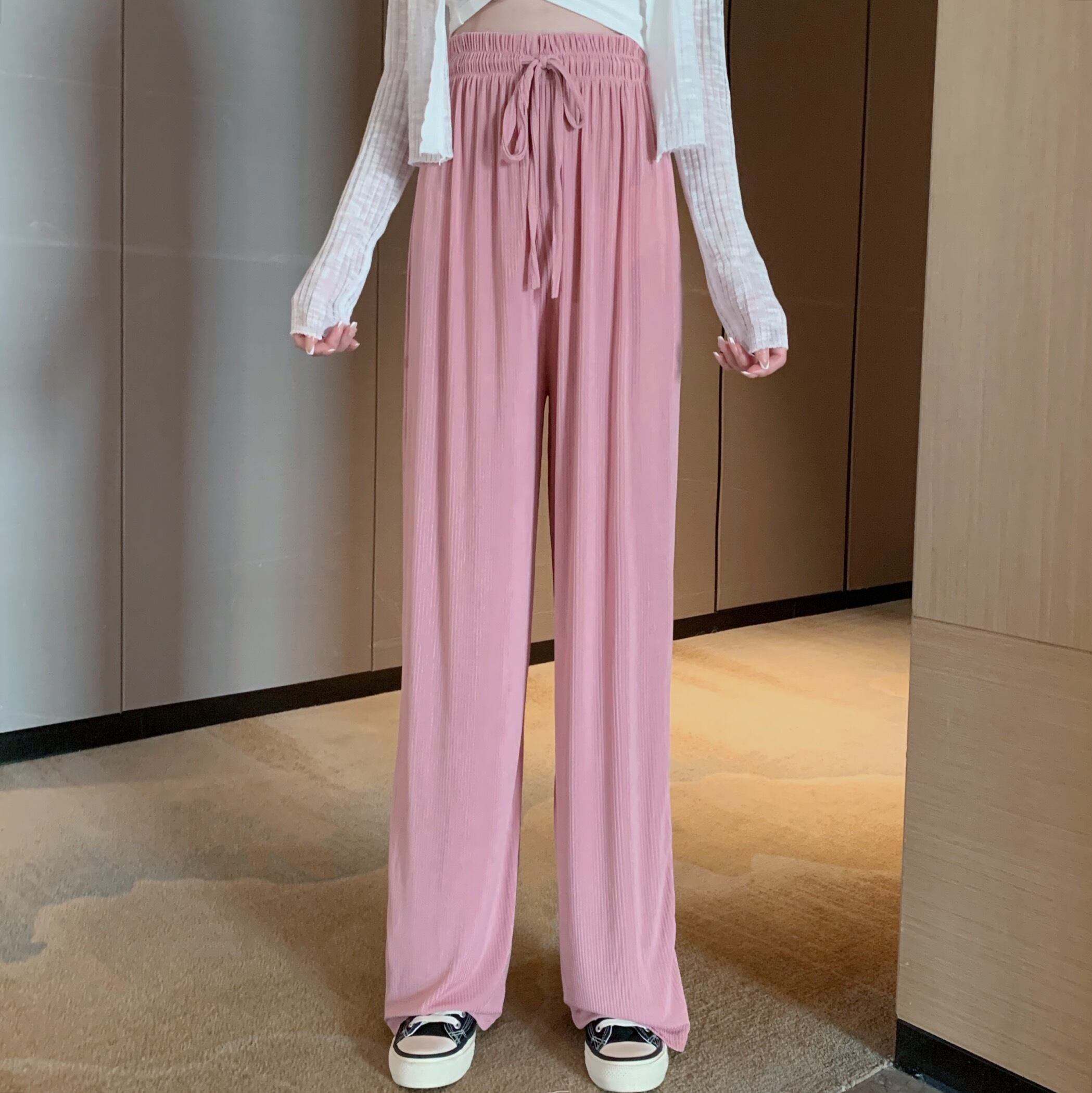 ルーズサマー薄手ストレッチハイウェストカジュアル エラスティック 伸縮 夏物 シルク Xiaofeijia72993222518