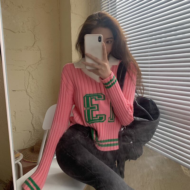 オータムウィンターセーター ピンク 秋物 冬物 Xiaofeijia53896399866