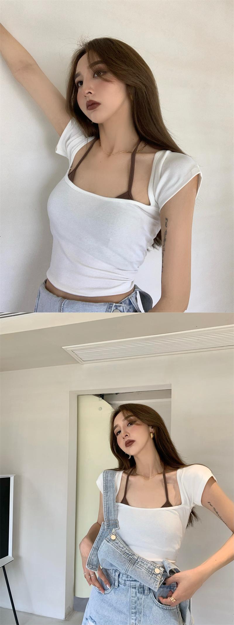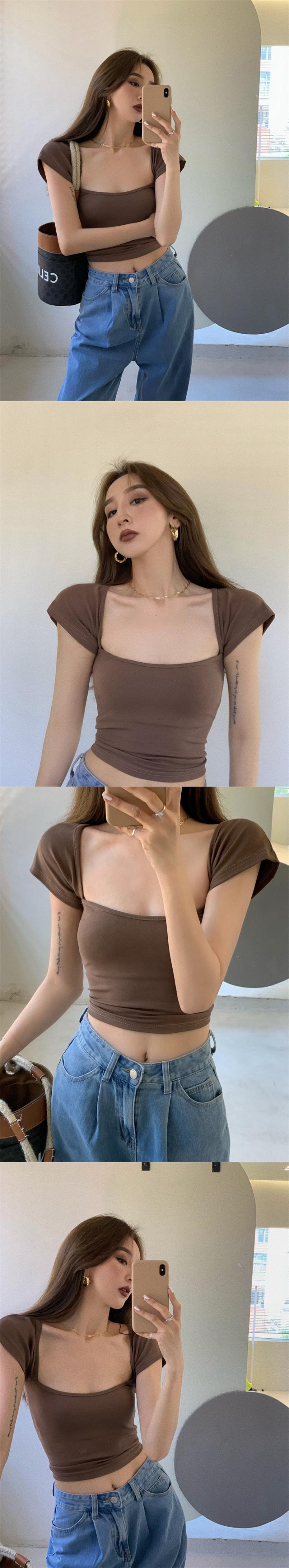 ブラウス サマーショートソリッド カラーTシャツ 薄手 夏物 ソリッドカラー Xiaofeijia10513059084