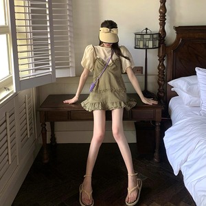 シャツ サマーラウンドネックスリーブショートドレス 夏物 Oネック Xiaofeijia12566363820