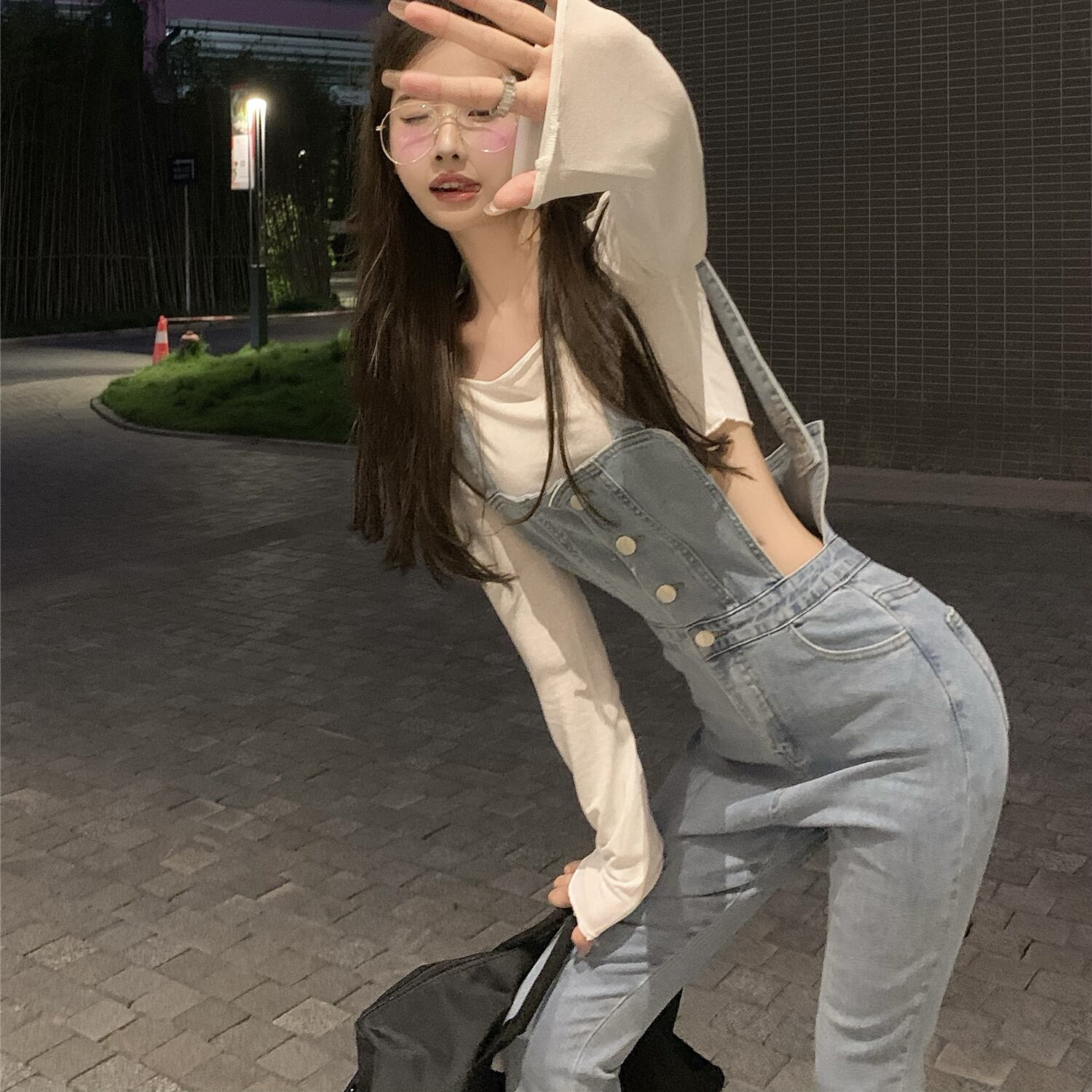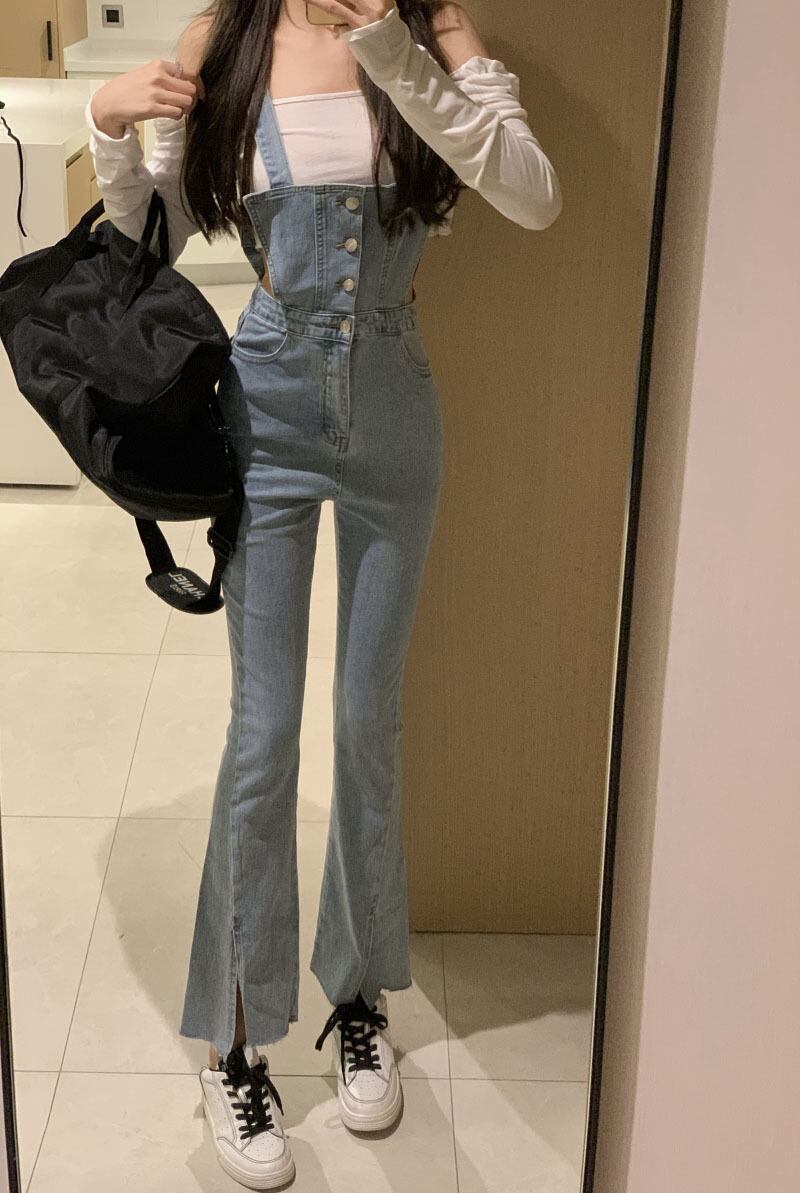 オーバーオール ブルージーンズ オータムスタンダードスリムパンツ ハイウェストウェスト レッド レトロ 秋物 Xiaofeijia360579662