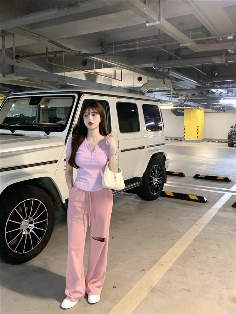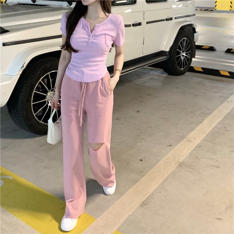 色:ピンクのTシャツ,白いTシャツ,ピンクのパンツ,グレーパンツ