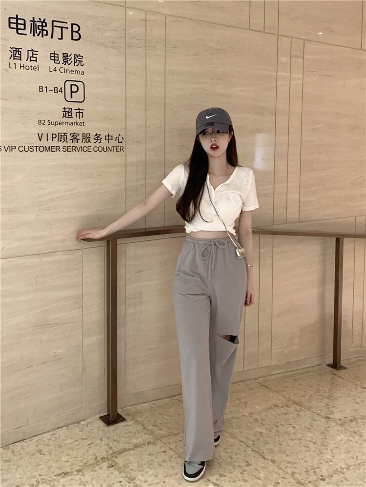 ホワイトTシャツ ショートトップス Vネック薄手サマースリム 夏物 Xiaofeijia11985530126
