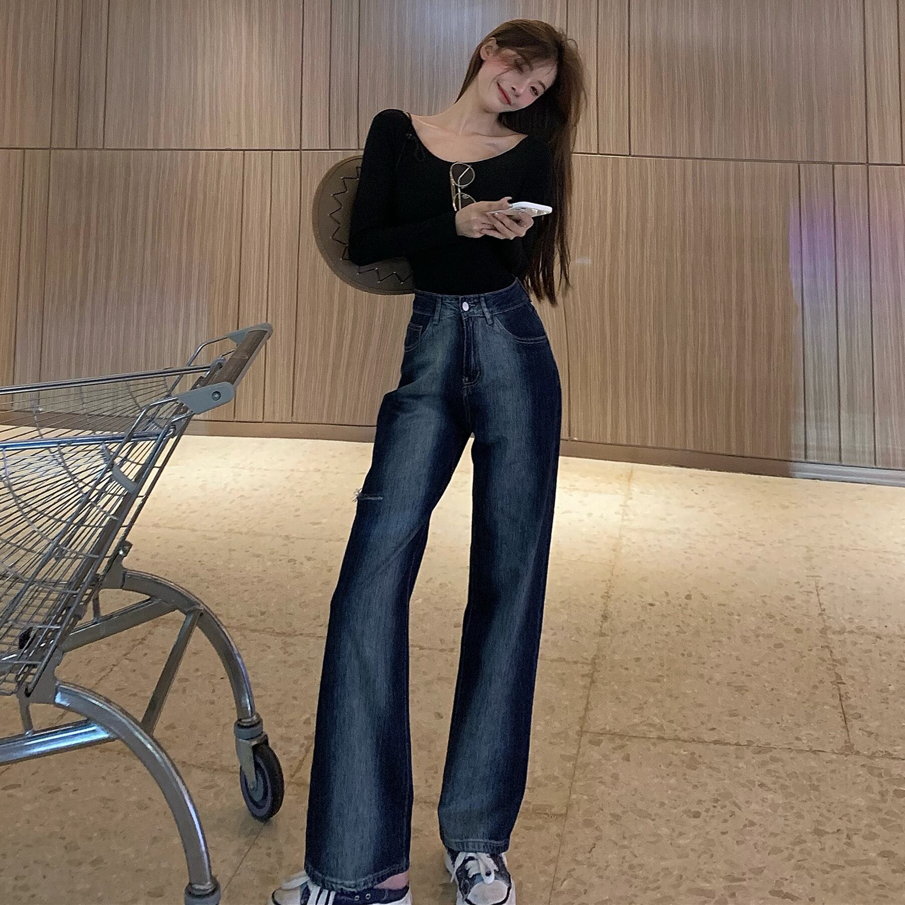 スタンダードカラールーズハイウェストパンツ レトロ Xiaofeijia68991171537