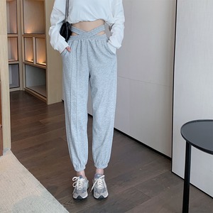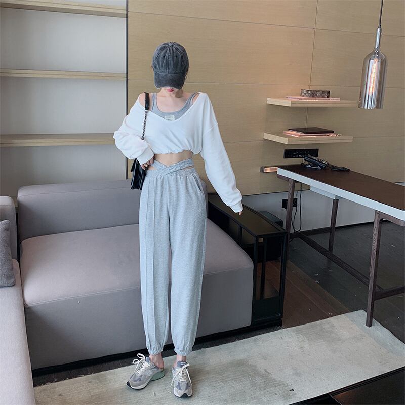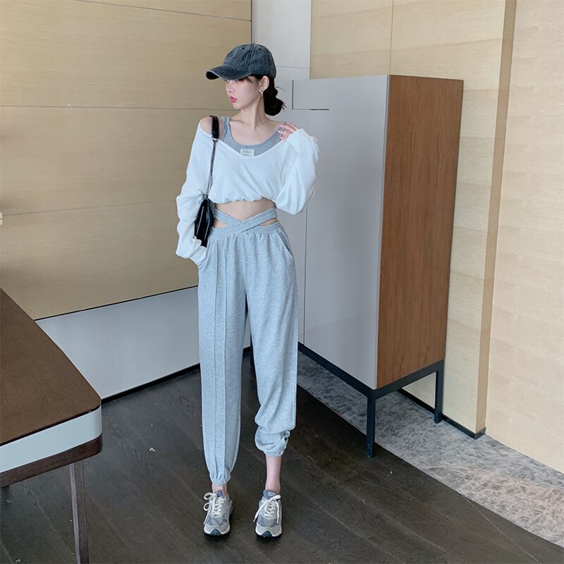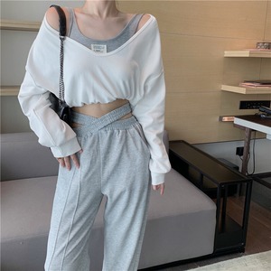 Vネックツーピース スウェット トップス ルーズクロスウェストセット レッド Xiaofeijia59341179102