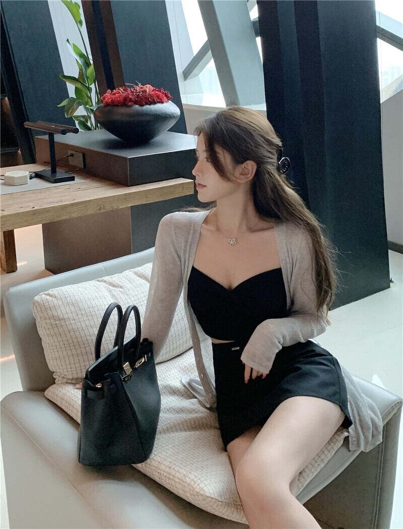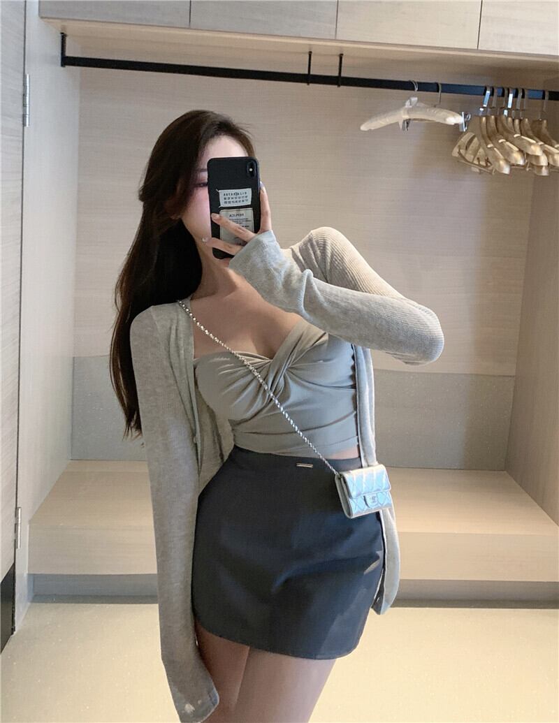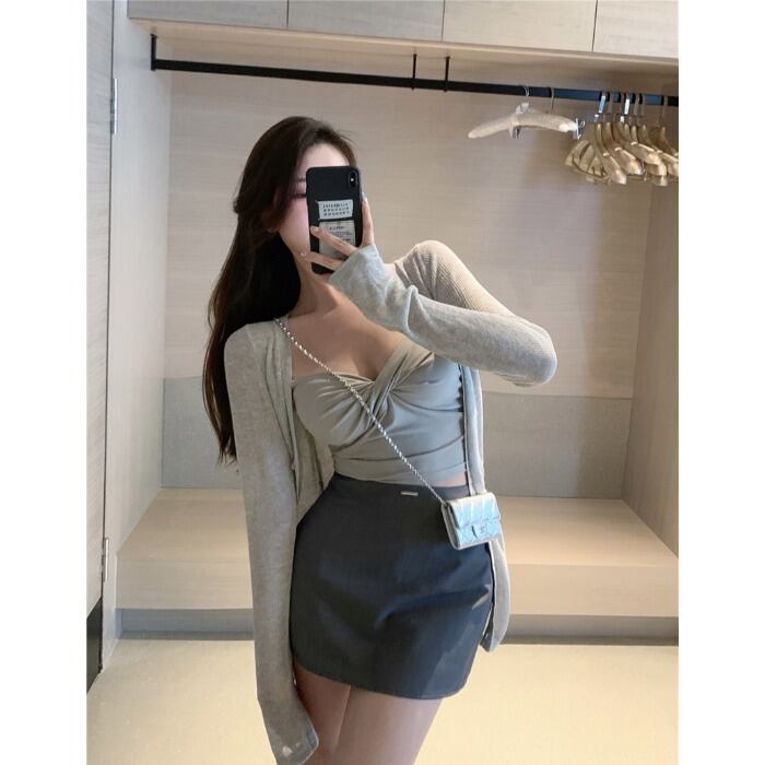 クロスVネックショートバックオータムカーディガントップス 秋物 Xiaofeijia80783035915