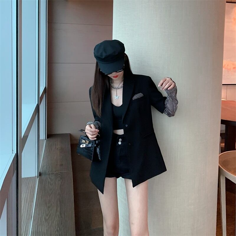 オータムスタイルブラックスリーブジャケット 秋物 ステッチ Xiaofeijia98520236346
