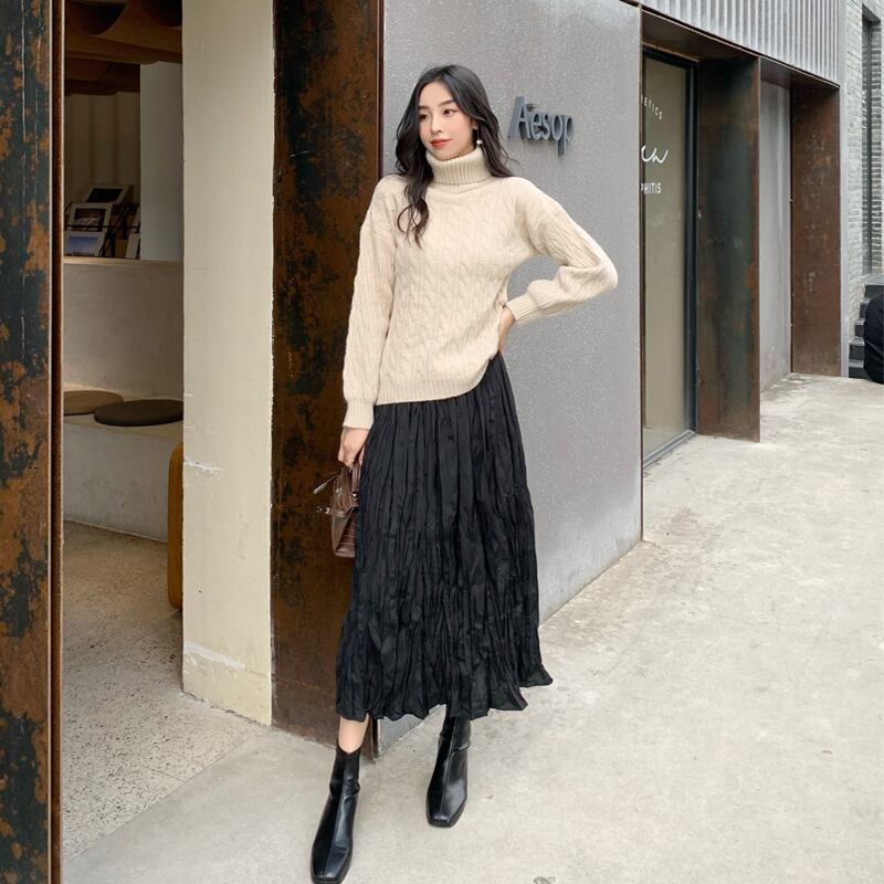 ハイウェストプリーツオータムAライン 秋物 スカート Xiaofeijia52645712304